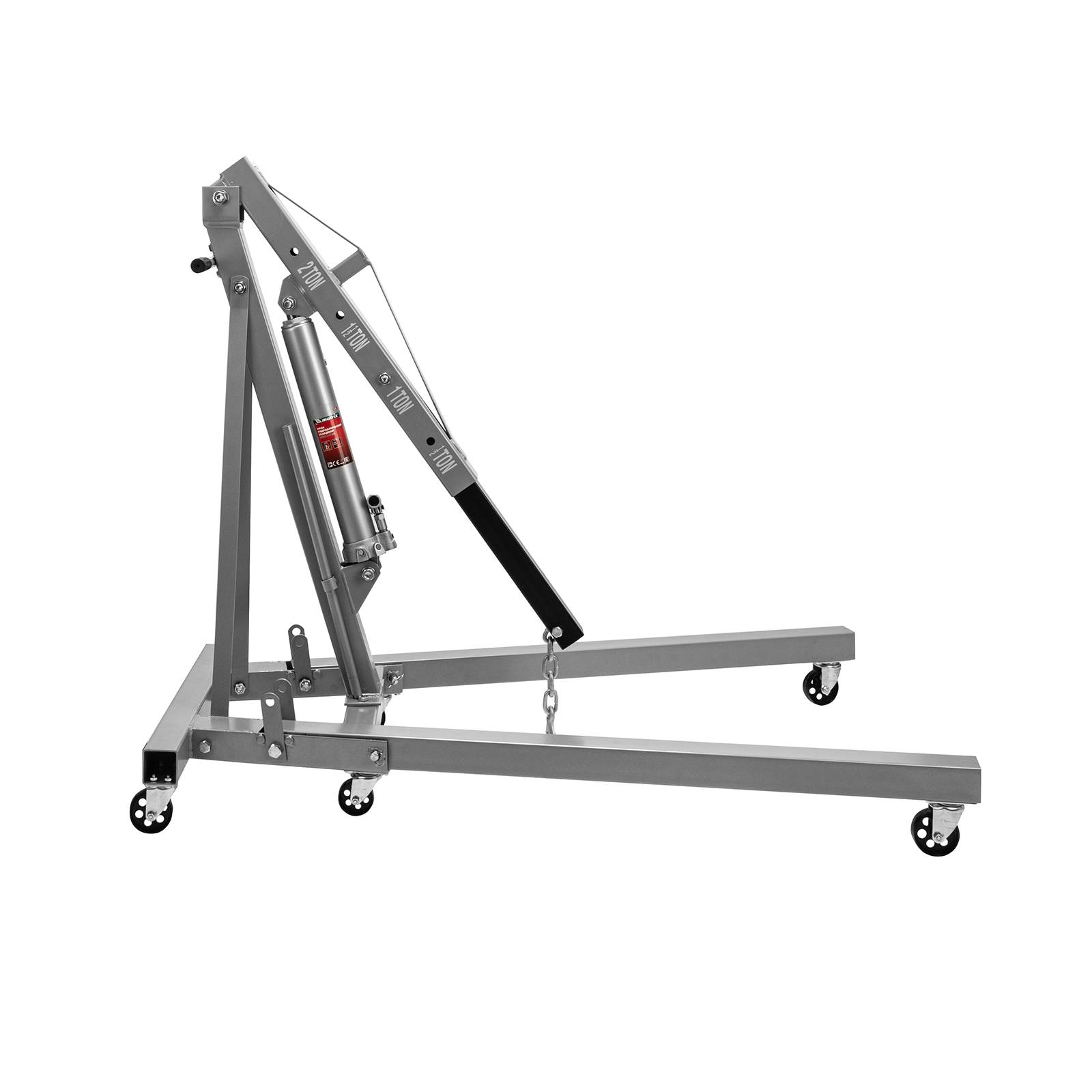 Складной гидравлический кран Matrix 567325 грузоподъемностью до 2 т, поставляющийся комплектом из 2 частей, — мобильное устройство для подъема на высоту с 25 до 2200 мм и перемещения тяжелых элементов автомобильного оборудования. Устройство изготовлено из стали и выдерживает повышенные нагрузки. Величина вылета стрелы регулируется в зависимости от массы груза. Кран совместим с траверсой Matrix 567275. Используется в автосервисах для демонтажа и монтажа автомобильных двигателей, будет полезен и в частном гараже.