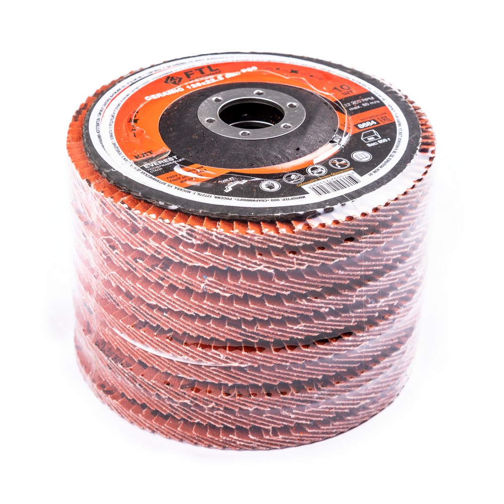 Круг лепестковый с керамическим абразивом для шлифования по нержавеющей стали FTL Everest 27 125 х 22,2 мм P60