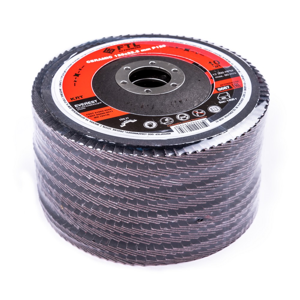 Круг лепестковый с керамическим абразивом для шлифования по нержавеющей стали FTL Everest 27 125 х 22,2 мм P120