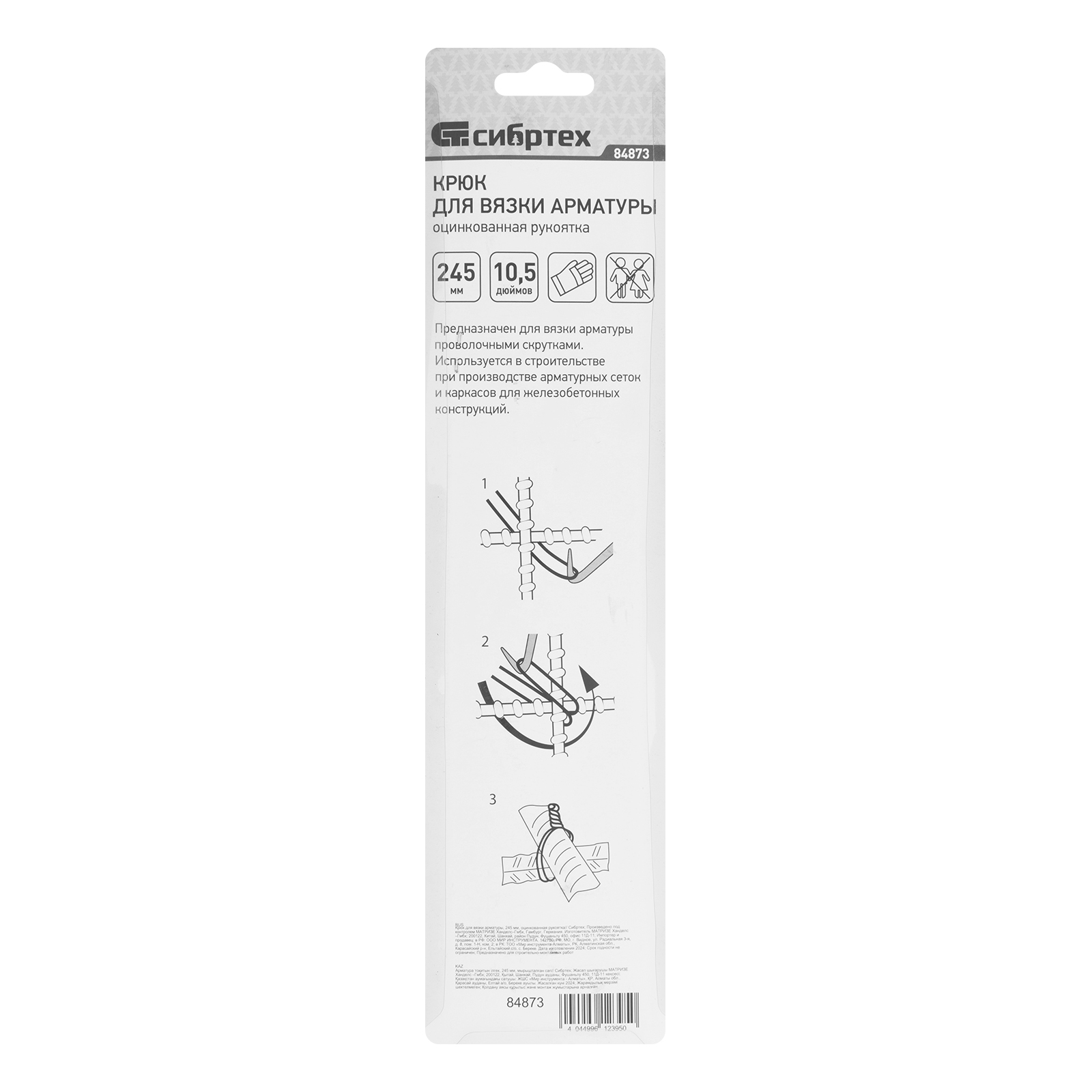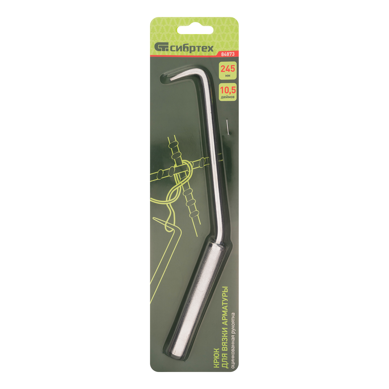 Крюк для вязки арматуры, 245 мм, оцинкованная рукоятка Сибртех