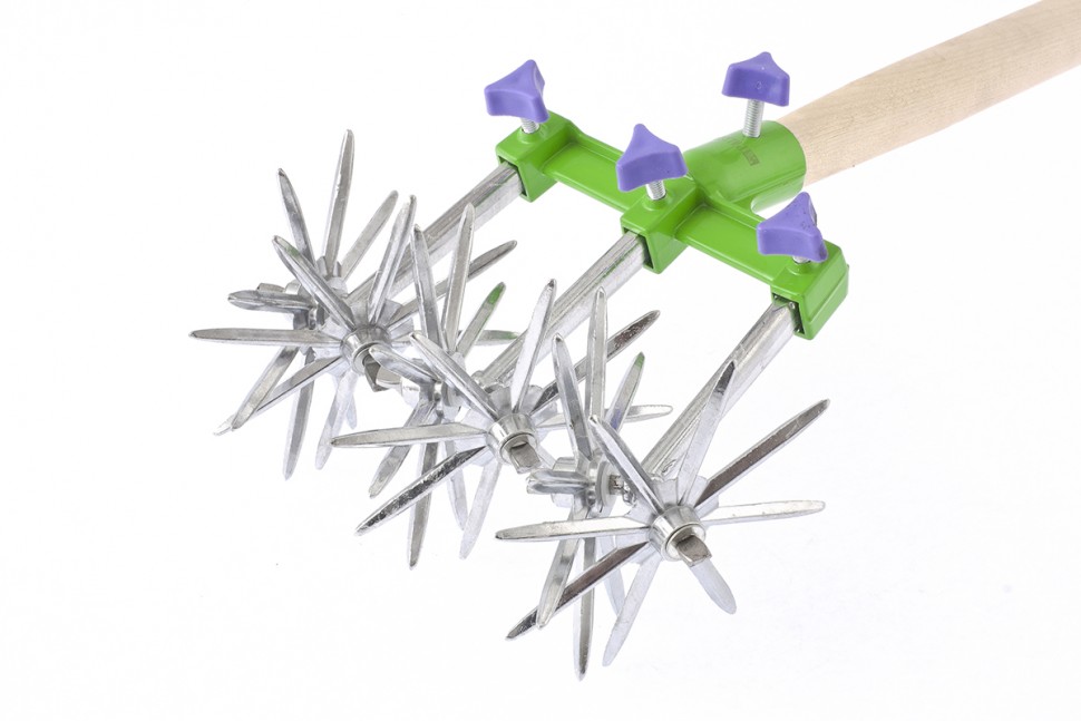 - Съемная рукоятка позволяет с удобством рыхлить грунт на небольших участках одной парой колес.