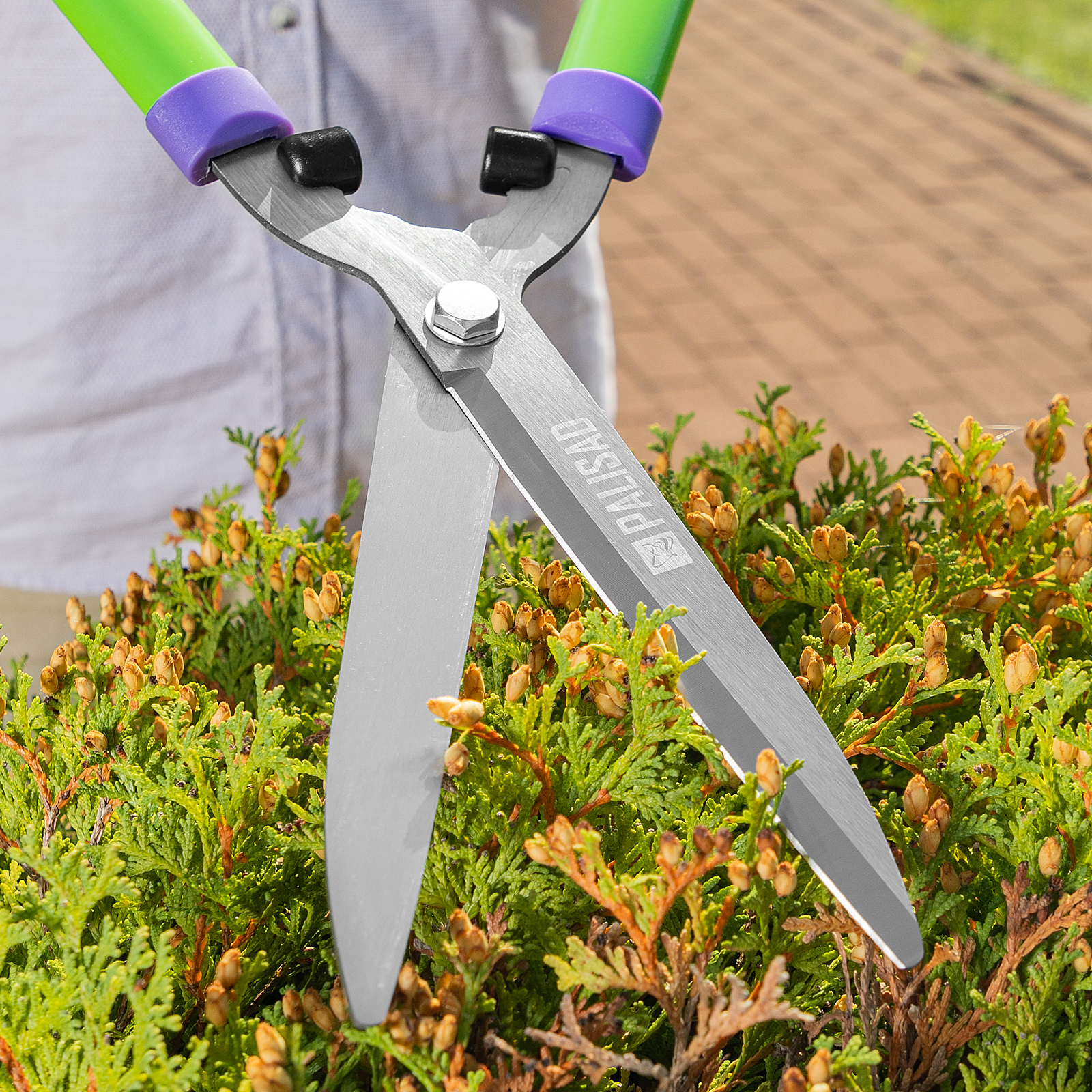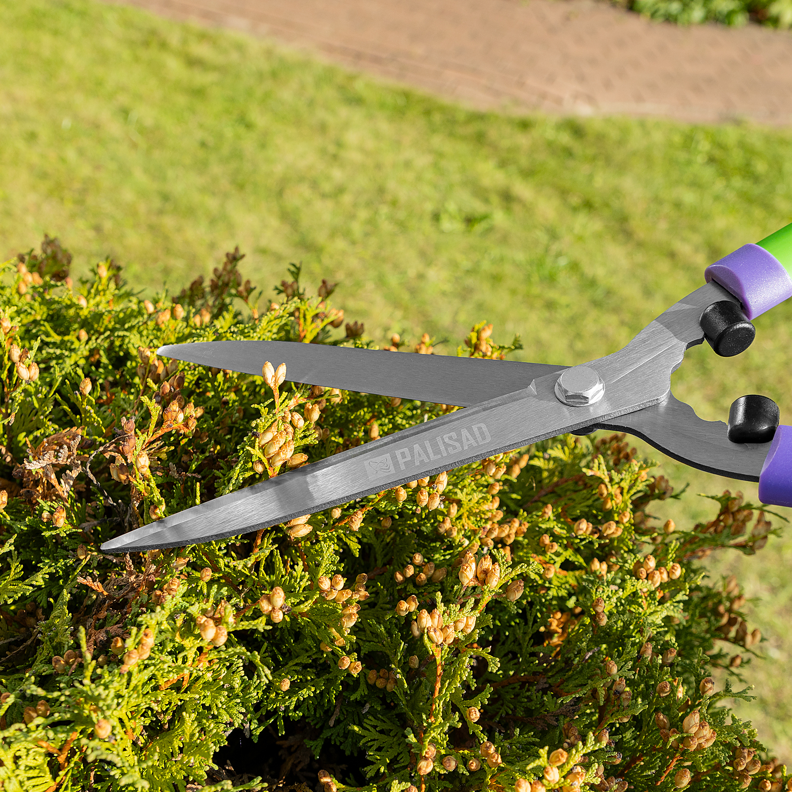 Кусторез Palisad 60591 длиной 550 мм, со стальными обрезиненными рукоятками, пригодится садоводам для ухода за участком. Поможет поддерживать аккуратный вид кустарников и живых изгородей. Кусторез подходит для подрезания молодых веток толщиной до 10 мм с целью омоложения и придания им нужной формы.