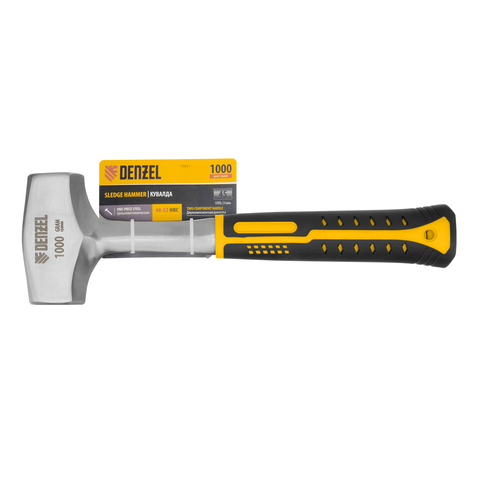 Кувалда 1 кг, цельнометаллическая, двухкомпонентная рукоятка Denzel