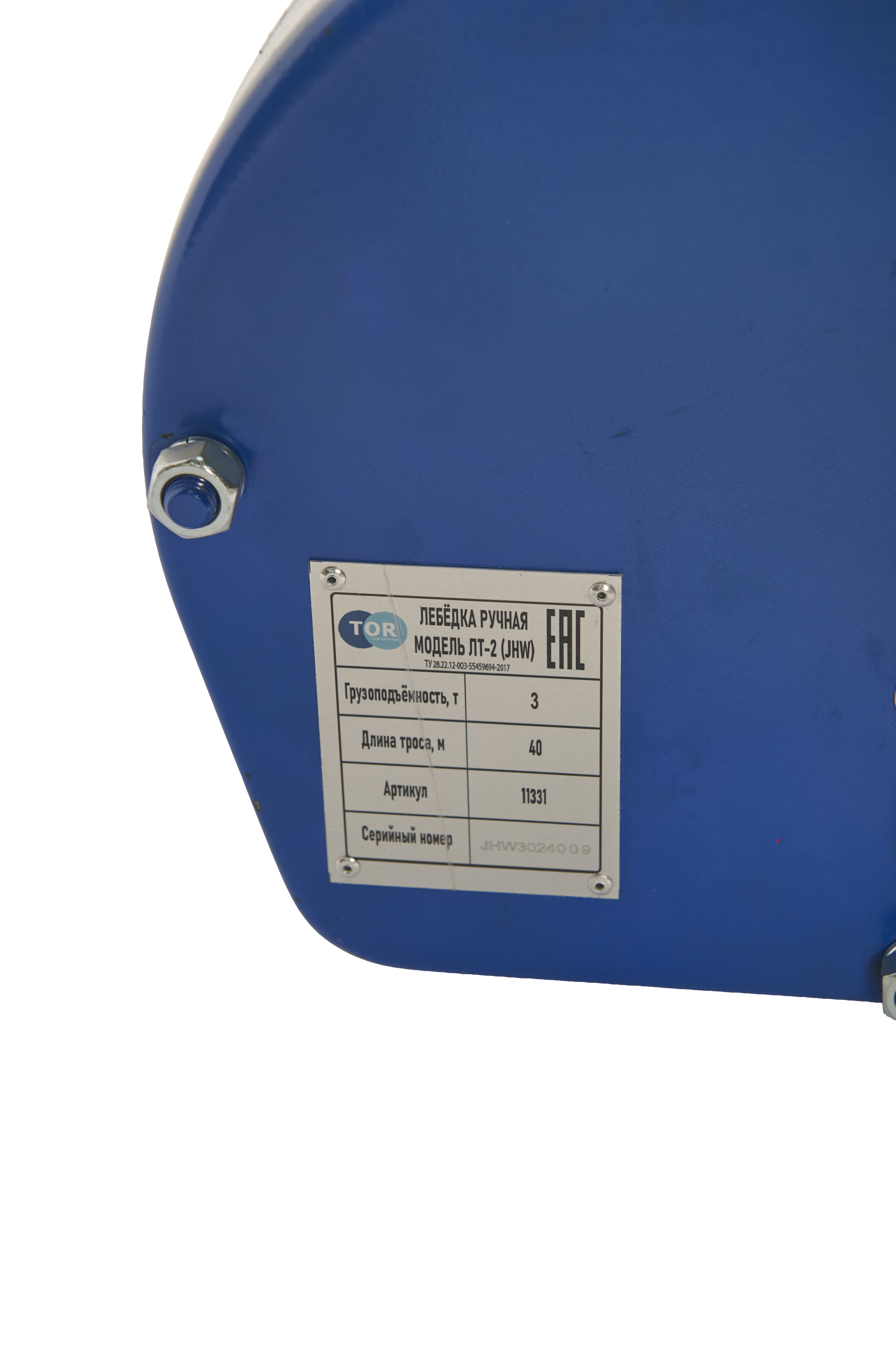 Лебедка ручная барабанная с тросом 3000кг 40м с храповым механизмом TOR JHW в Санкт-Петербурге