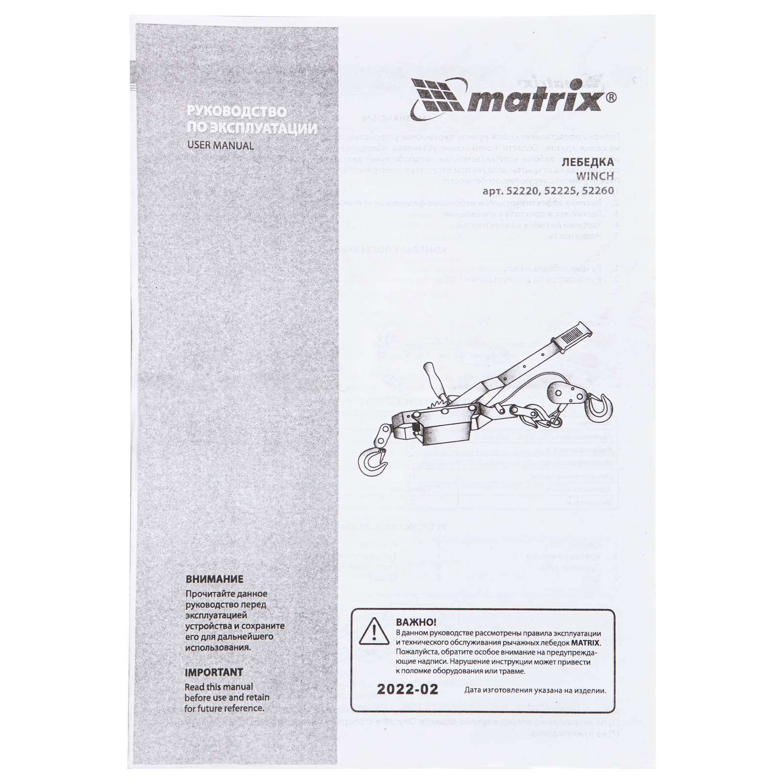 Лебедка рычажная, тяга 2 т, подъем 0.8 т, одинарное храповое колесо Matrix в Санкт-Петербурге