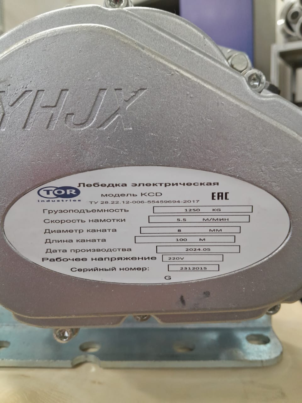 Лебедка электрическая 1250кг 100м с канатом 220В алюминиевый корпус TOR KCD(А) в Санкт-Петербурге