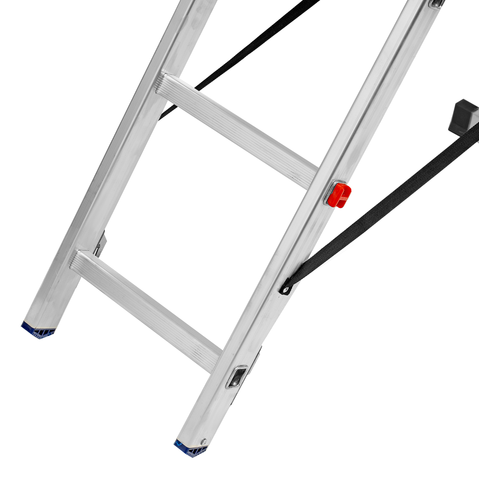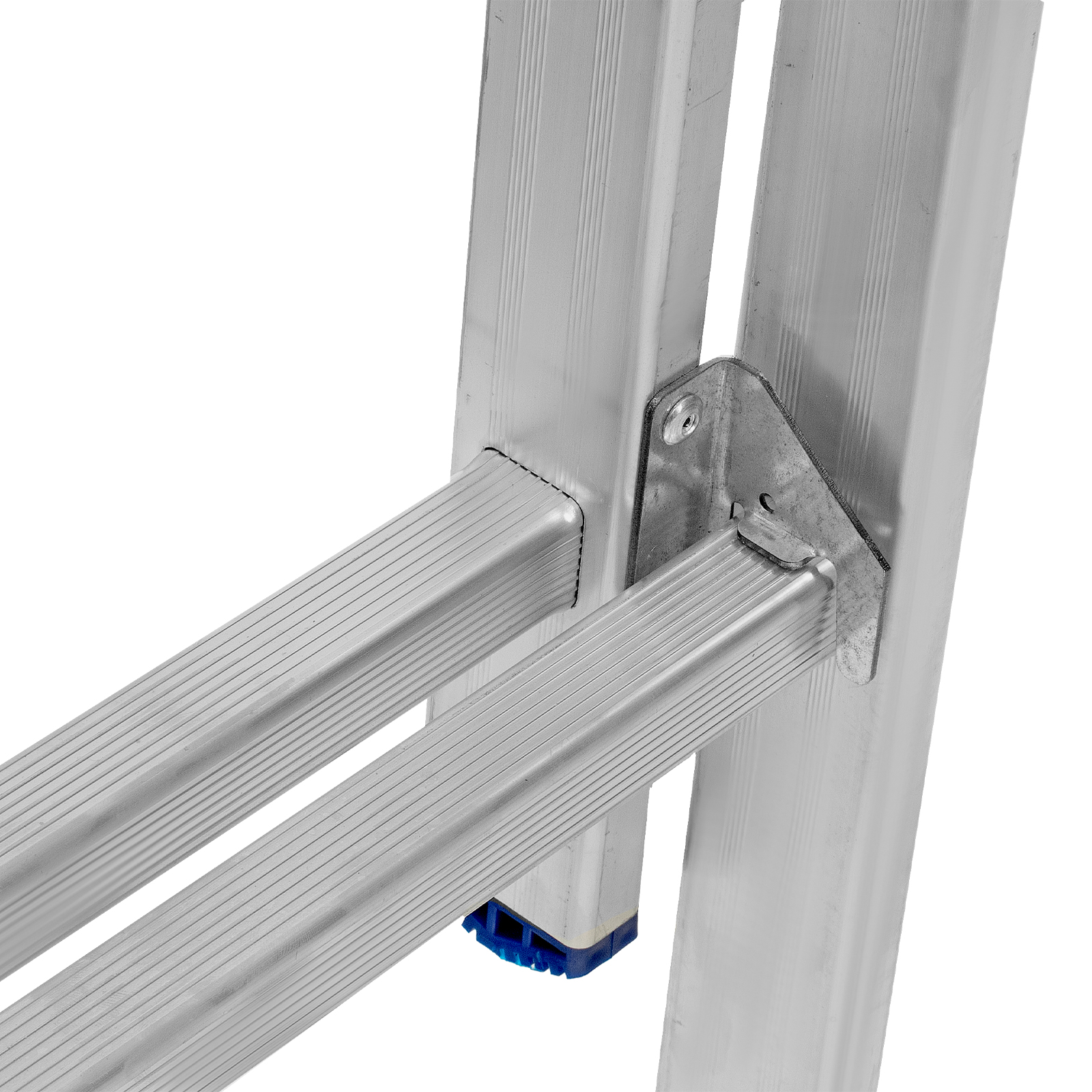 - 3 рабочих положения — стремянка, двухсторонняя стремянка, приставная лестница с одной или двумя секциями.