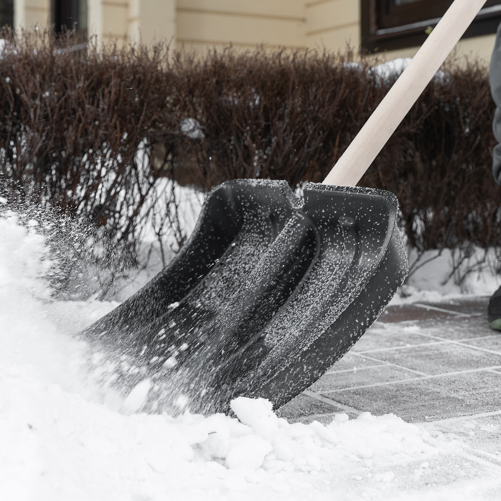 Лопата для уборки снега пластиковая, 380х385х1420 мм, оцинк. планка, деревянный черенок
