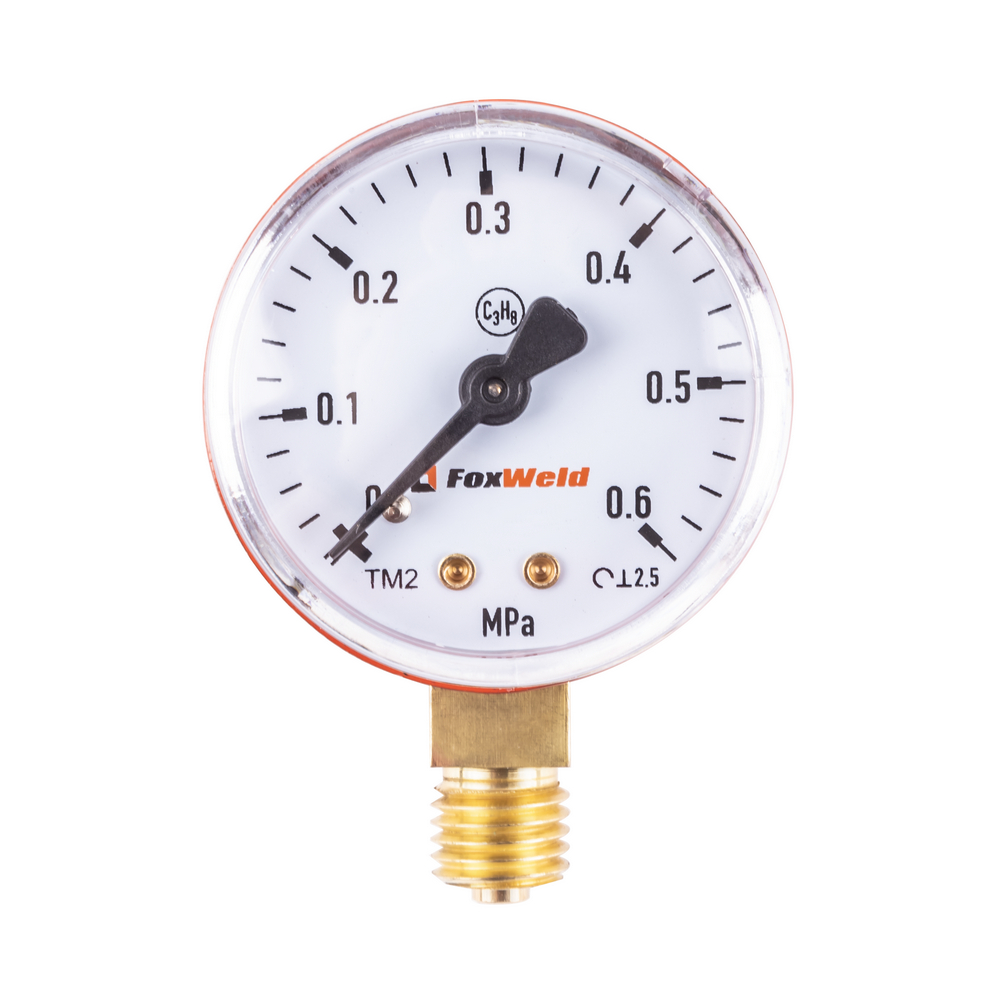 Манометр Foxweld предназначен для измерения и отражения давления пропана  от 0 до 0,6 МПа в баллоне при выполнении сварочных работ. В данном измерительном приборе применяется аналоговый метод работы и индикации. Присоединяется  радиально. Корпус выполнен из латуни.