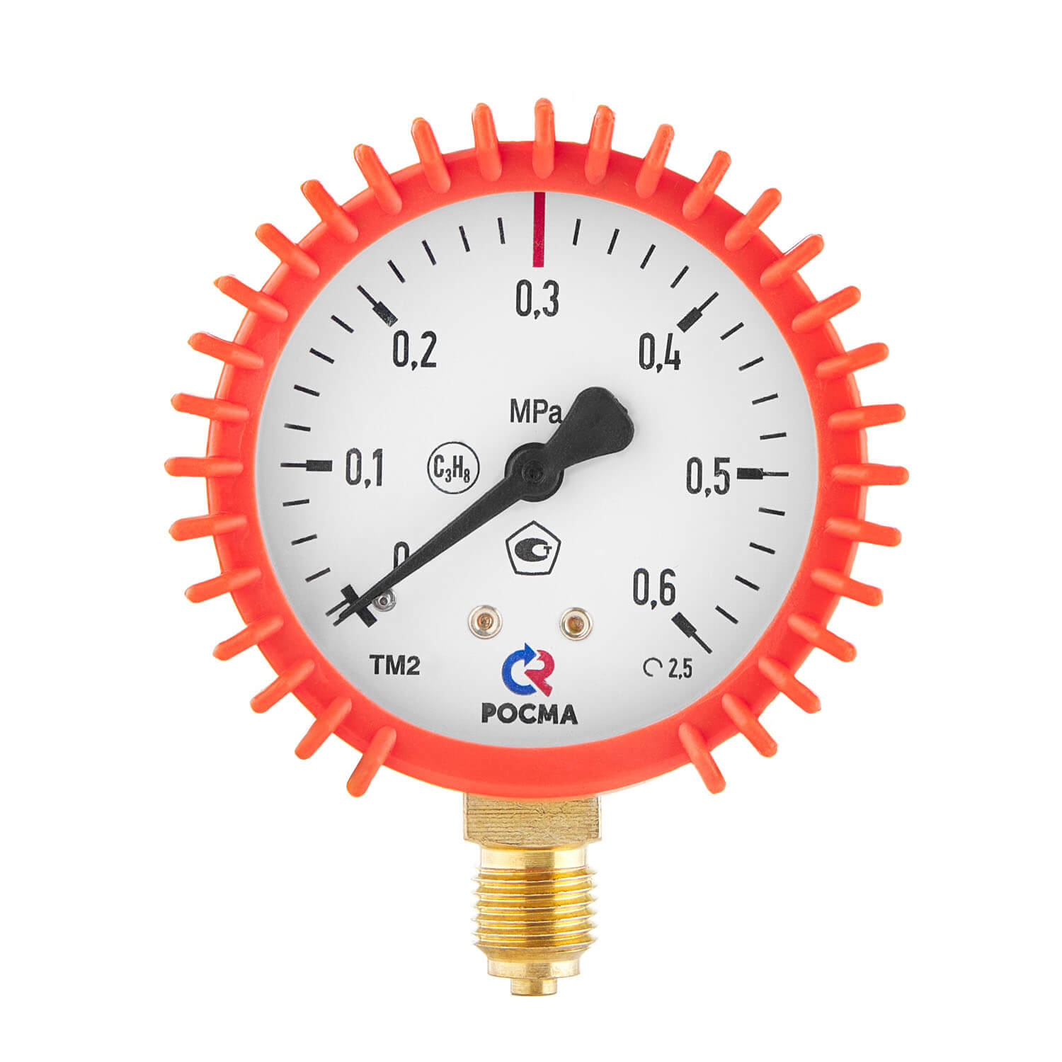 Манометр с дюймовой цилиндрической резьбой G1/4, что обеспечивает высокую прочность и герметичность соединения манометра с корпусом пропанового редуктора. Совместим с редукторами серии БПО-5-КР-И.