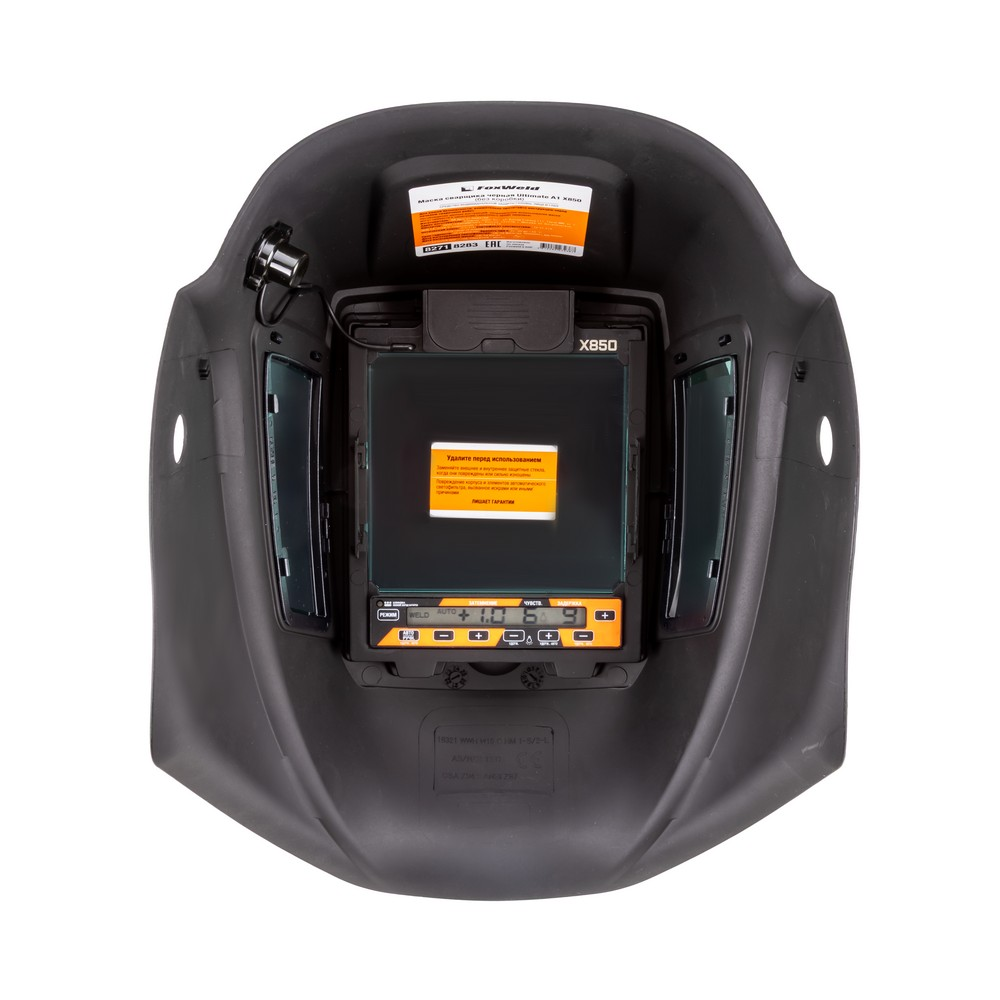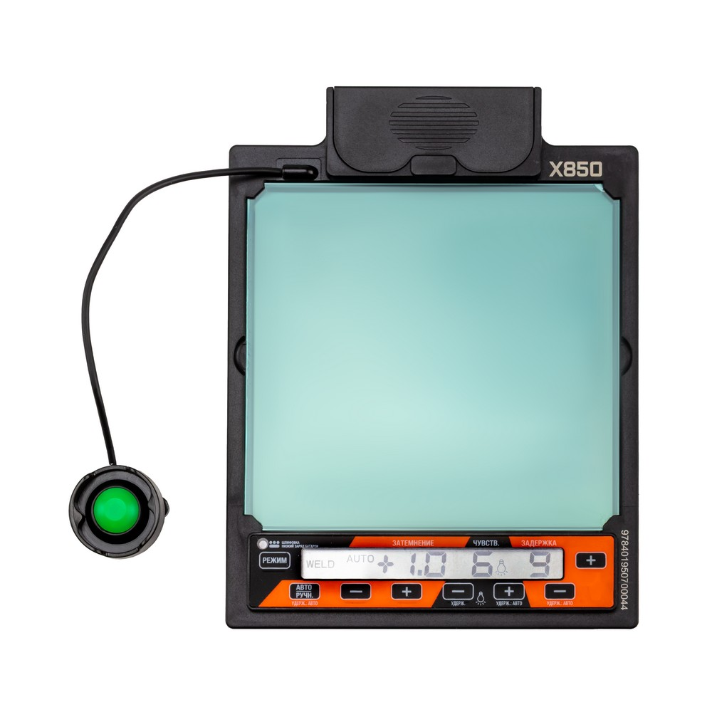 Сварочная маска A1 X850 серии Ultimate предназначена для защиты глаз, лица и шеи сварщика от вредного ультрафиолетового излучения, искр и брызг расплавленного металла. Режимы и параметры настраиваются с помощью удобных кнопок на цифровой панели управления светофильтра, а вся необходимая информация отображается на LCD экране. Уникальная конструкция механизма движения оголовья снижает нагрузку на шею и голову, а также облегчает работу в ограниченном пространстве. 2 дополнительных боковых самозатемняющихся окошка позволяют работать в производственных условиях при близком расстоянии от других специалистов. С внешней стороны на корпусе расположена кнопка включения режима шлифовки (GRIND).АВТОМАТИЧЕСКАЯ НАСТРОЙКА ЗАТЕМНЕНИЯ: Сварочная маска оборудована синергетическим подбором параметров затемнения. В режиме синергетики система автоматически устанавливает нужные параметры затемнения в зависимости от условий рабочего процесса.5 ОПТИЧЕСКИХ ДАТЧИКОВ: Независимые фотодатчики мгновенно срабатывают при появлении сварочной дуги и поддерживают закрытое состояние светофильтра даже тогда, когда один из датчиков перекрыт каким-либо препятствием. Повышенная чувствительность сенсоров даёт исключительную стабильность обнаружения дуги. Маска оснащена пятью независимыми датчиками, что гарантирует срабатывание даже в том случае, если четыре датчика будут закрыты.УНИКАЛЬНЫЙ МЕХАНИЗМ ДВИЖЕНИЯ: Механизм движения, установленный на оголовье маски, позволяет перемещать щиток в нескольких плоскостях. Это уникальная конструкция механизма движения, которая снижает нагрузку на голову и шею сварщика, а также облегчает работу в ограниченном пространстве.КОМПАКТНАЯ ФОРМА ЩИТКА: Эргономично уменьшенная ширина щитка маски значительно облегчает вес, а следовательно, и нагрузку на голову сварщика.2 ДИАПАЗОНА ЗАТЕМНЕНИЯ: Эта модель маски имеет 2 диапазона степени затемнения: 4 – 8 DIN и 8 - 13 DIN. Первый диапазон больше подходит для плазменной резки, ручной, полуавтоматической и аргонодуговой сварки на малых токах. Диапазон 8 – 13 DIN подойдёт для сварки MMA, MIG/MAG, TIG при сварочном токе 125 А и выше.ПРЕИМУЩЕСТВА:Цифровая панель управления с LCD дисплеемВнешняя кнопка включения режима GRIND (шлифовка)Чувствительность светофильтра в TIG-сварке меньше 2 амперЛёгкий и прочный материал маски, негорючий и стойкий к излучению сварочной дугиОптимальный размер смотрового окна2 диапазона затемнения5 независимых фотодатчиков4 вида регулировки оголовьяИндикатор заряда батареиТехнология FULL COLORМаксимальная постоянная защита от невидимого УФ/ИК излучения дугиКомбинированное питаниеСоответствие современным стандартам качества DIN, ISO, EN379ФУНКЦИОНАЛЬНЫЕ ОСОБЕННОСТИ:ИНФОРМАТИВНАЯ ПАНЕЛЬ УПРАВЛЕНИЯ: Маска оборудована цифровой панелью управления для удобной настройки светофильтра. На панели расположены органы управления светофильтра и LCD дисплей с индикацией настроек и параметров.РЕЖИМ GRIND: Режим шлифовки (Grind) даёт возможность блокировать затемнение светофильтра для использования маски в качестве защитного щитка при работе с УШМ («болгаркой») или шлифовальным инструментом. Кнопка включения/выключения режима удобно расположена с внешней стороны корпуса маски.БОКОВОЕ ЗАТЕМНЕНИЕ: Одно из преимуществ этой модели — наличие двух дополнительных боковых самозатемняющихс