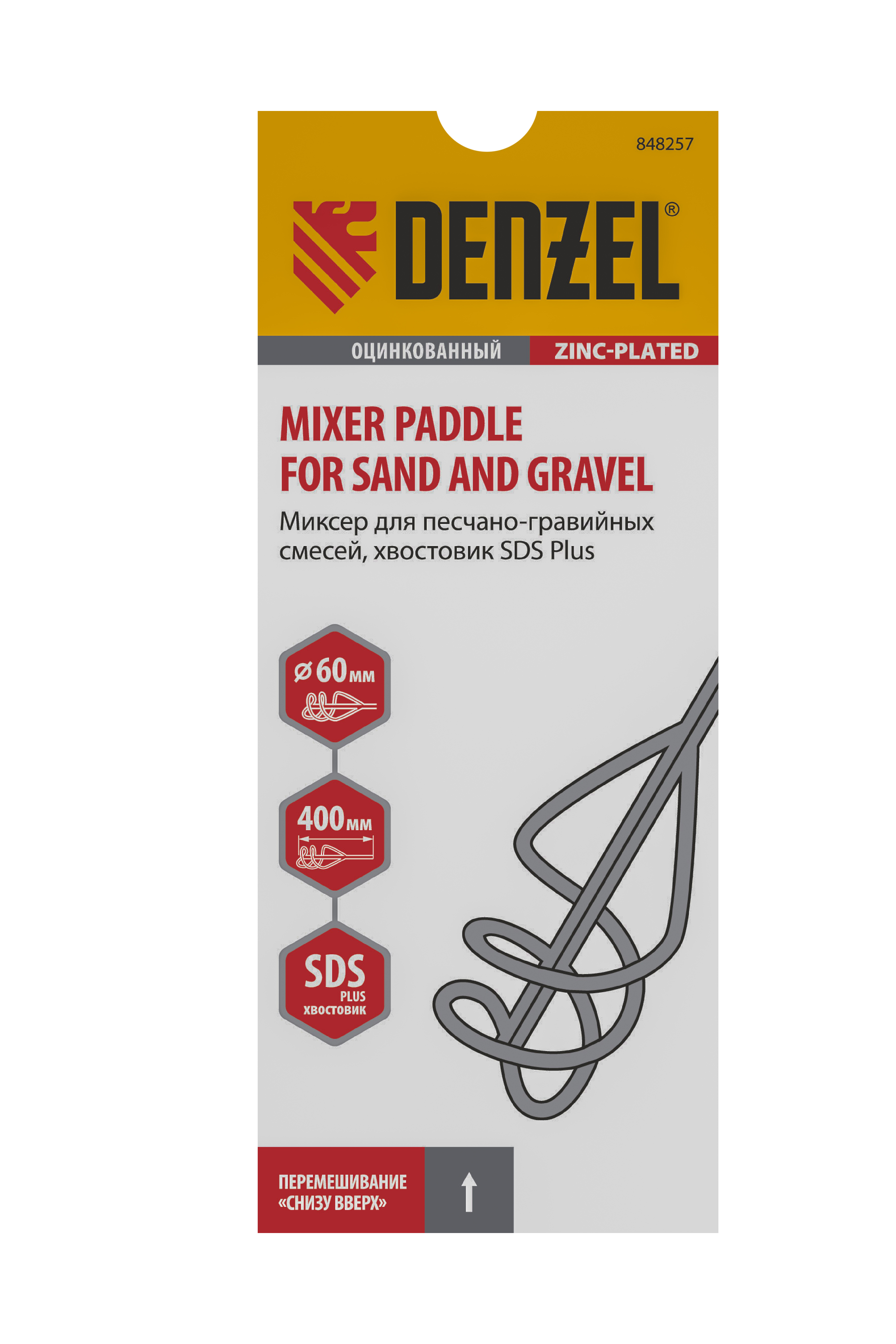 Миксер для песчано-гравийных смесей, 60 х 400 мм, оцинкованный, хвостовик SDS Plus Denzel в Санкт-Петербурге
