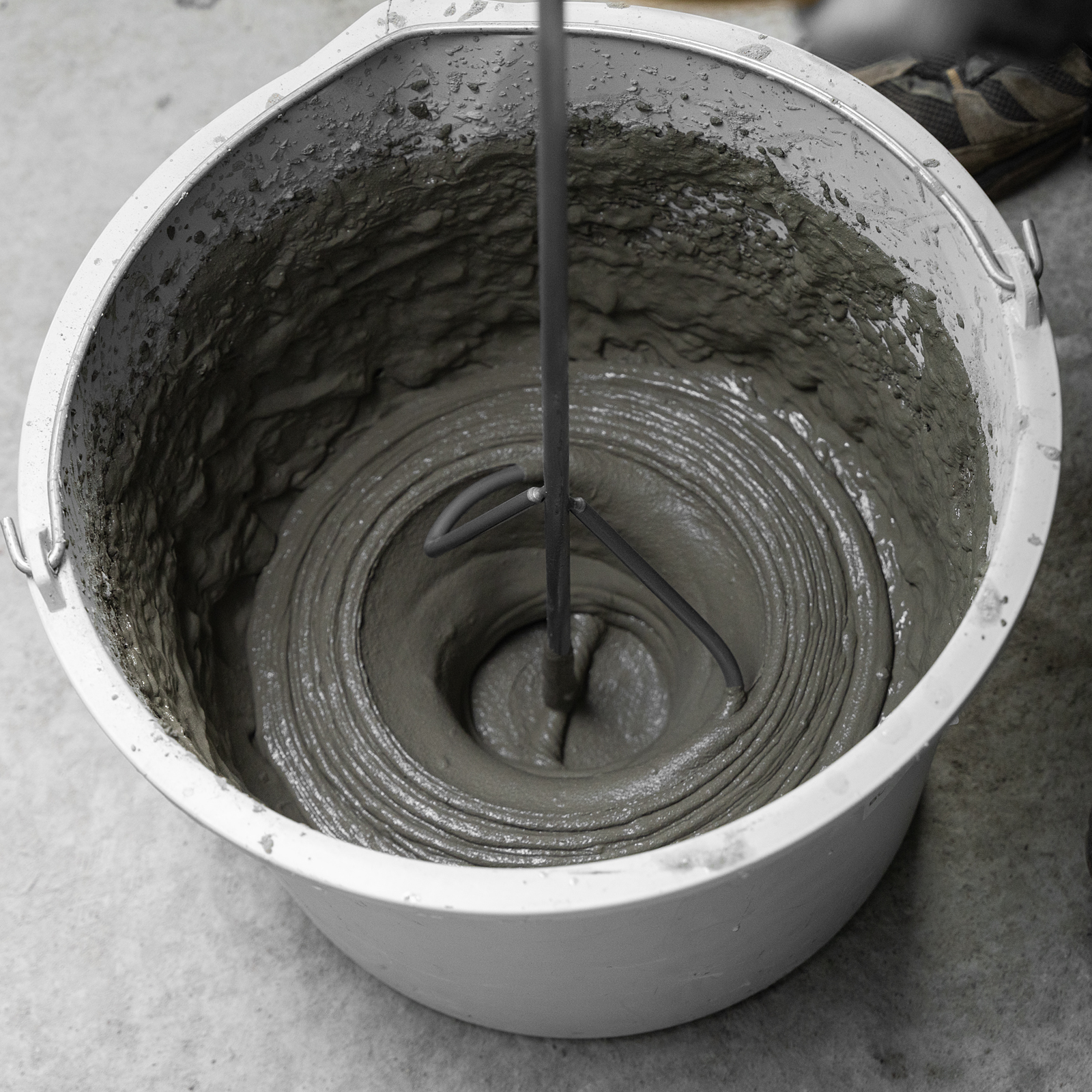 - Прочная сварная конструкция — стальной миксер выдерживает значительные нагрузки при размешивании густых составов.