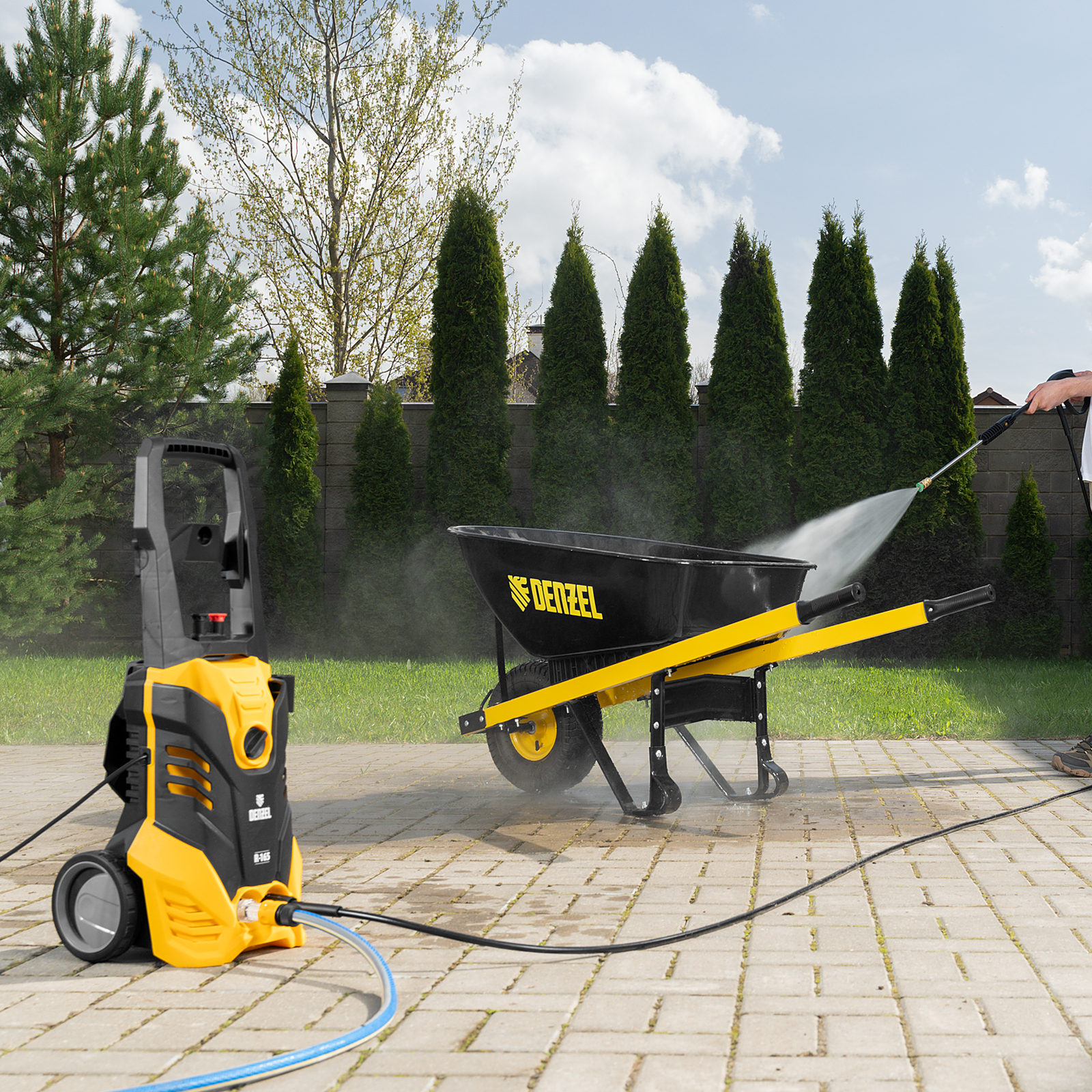 Моечная машина высокого давления R-180, 2200 Вт, 180 бар, 380 л/ч, колесная Denzel