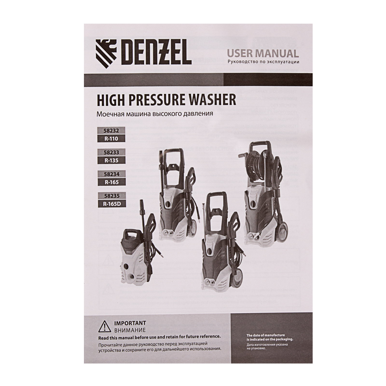 Моечная машина высокого давления R-180i, 2400 Вт, 180 бар, 7.5 л/мин, асинхронный двигатель Denzel