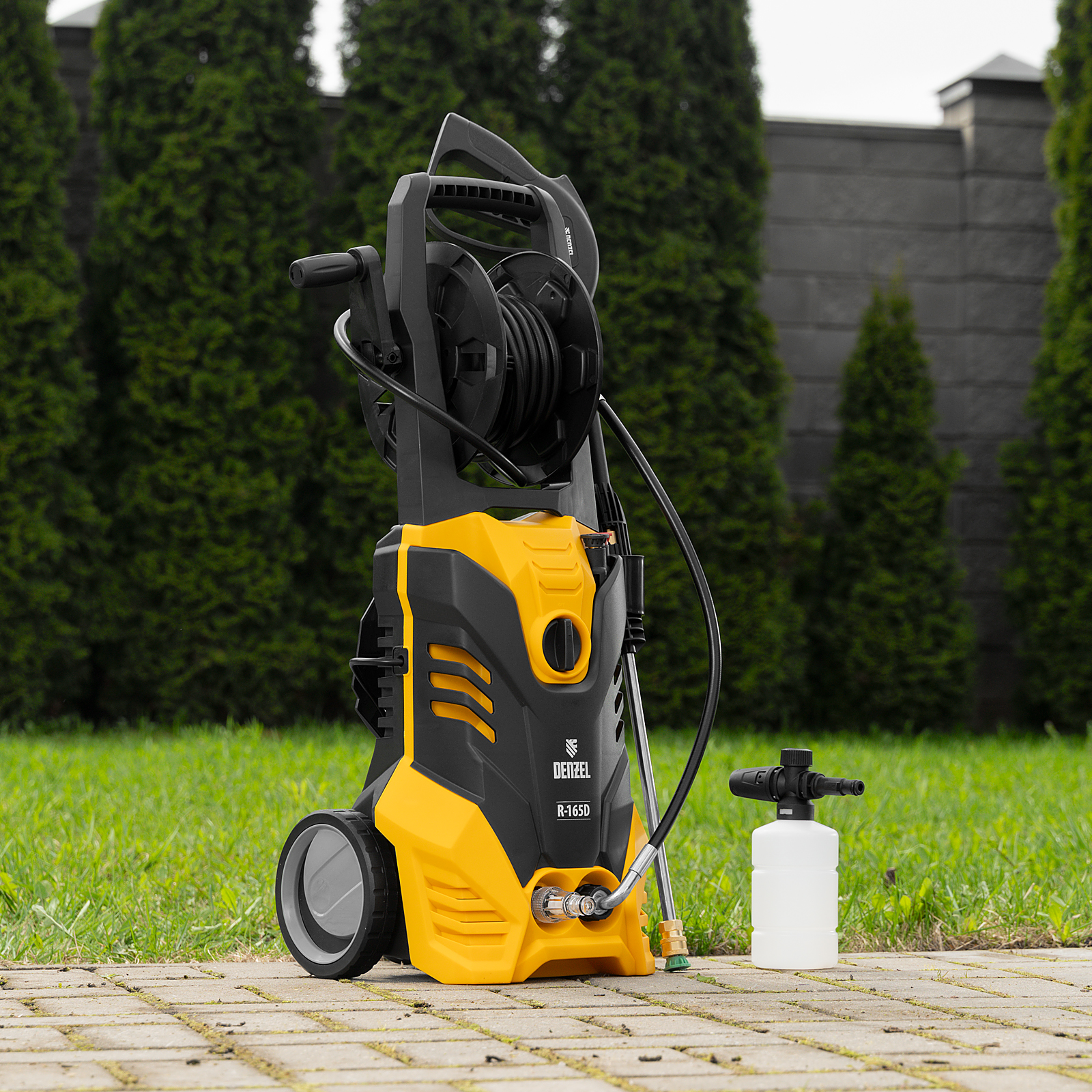 Моечная машина высокого давления R-180, 2200 Вт, 180 бар, 380 л/ч, колесная Denzel