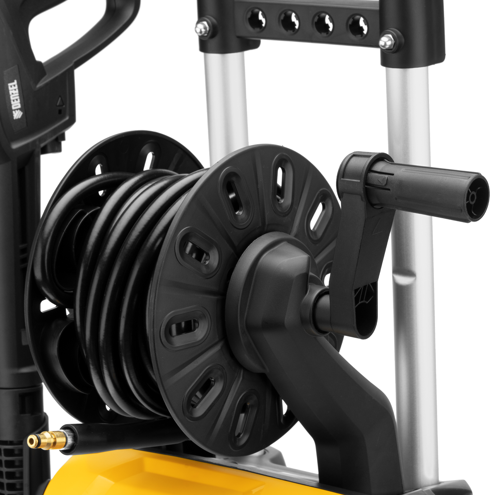 - Функциональность — машина оборудована специальной катушкой для удобного вытягивания шланга на необходимую длину.