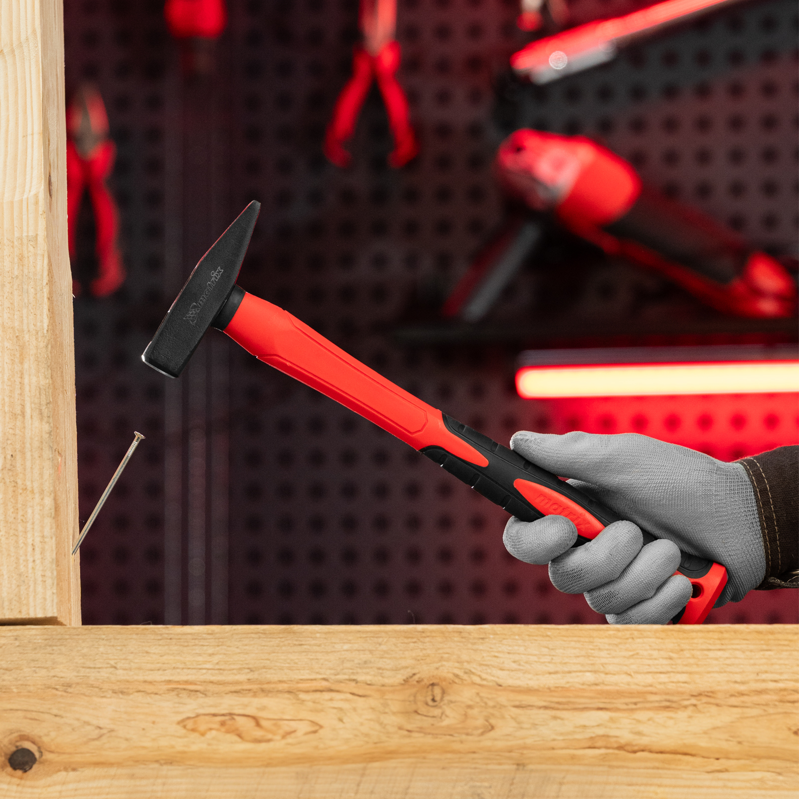 Молоток слесарный optimal, 300 г, фибергласовая обрезиненная рукоятка, квадратный боек Matrix