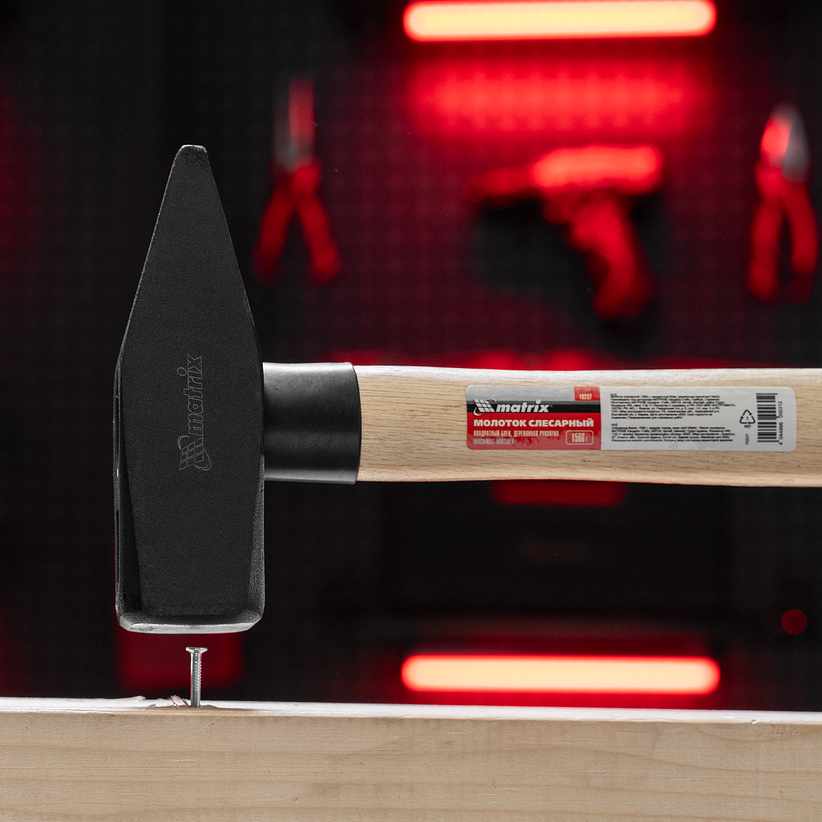 Молоток слесарный, 1500 г, квадратный боек, деревянная рукоятка Matrix