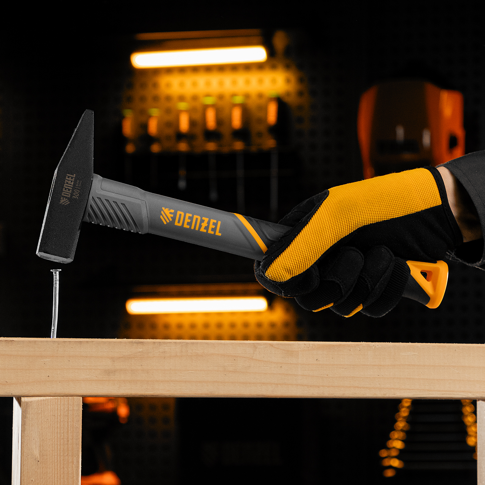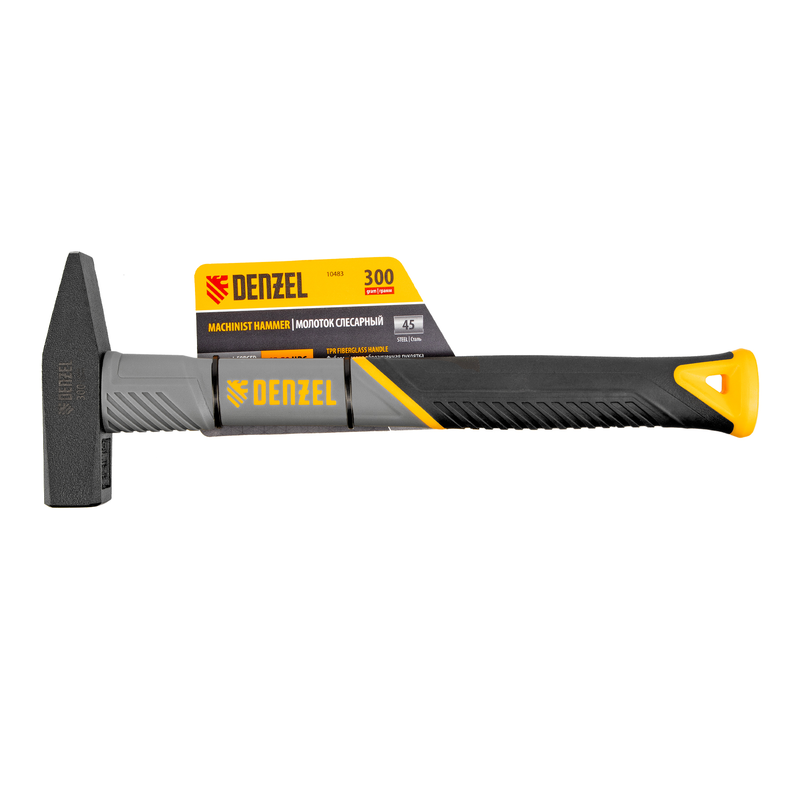 Молоток слесарный, 300 г, кованый, фибергласовая рукоятка c TPR покрытием Denzel