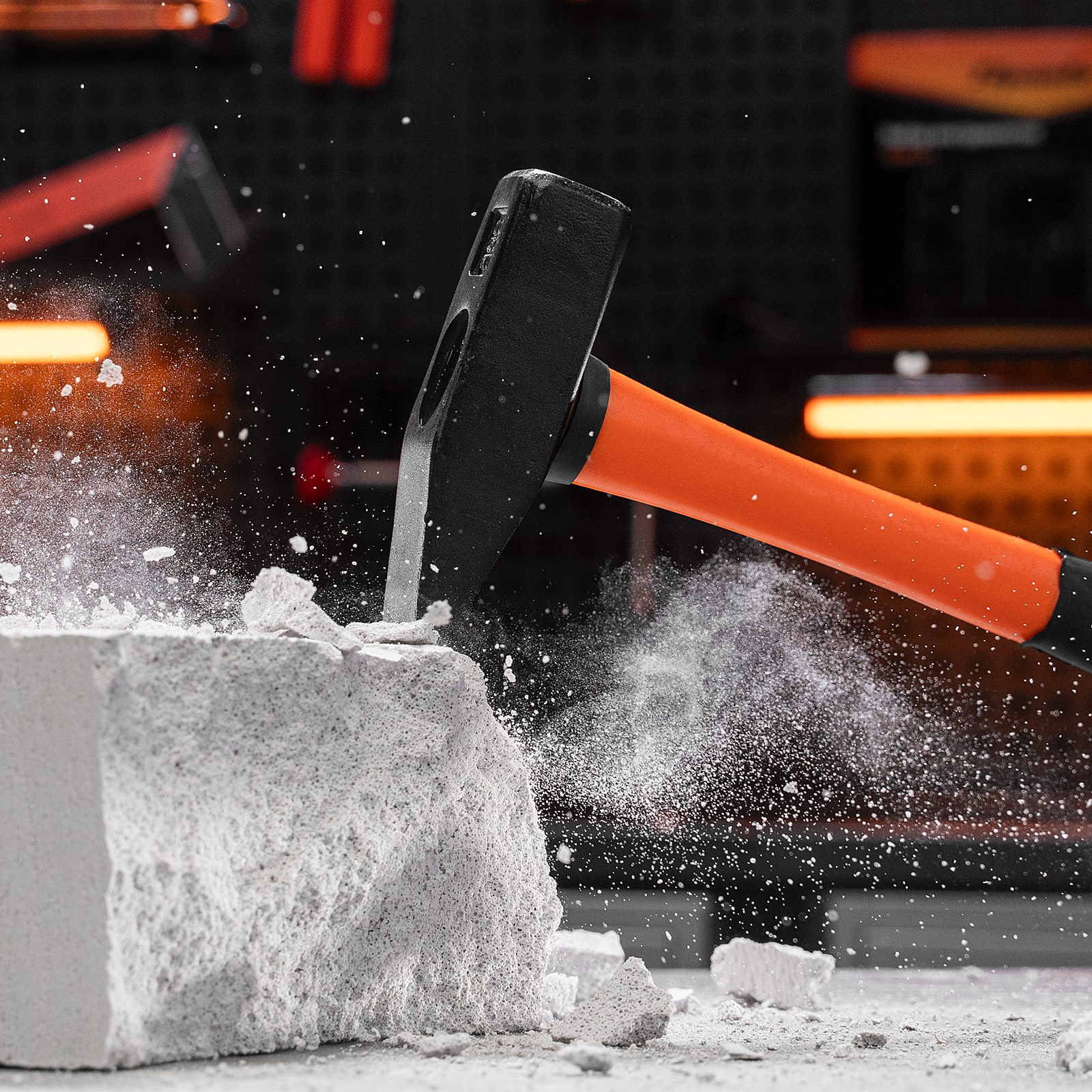 - Комфортная работа — обрезиненная фибергласовая рукоятка снижает отдачу при ударе и не выскальзывает из руки.