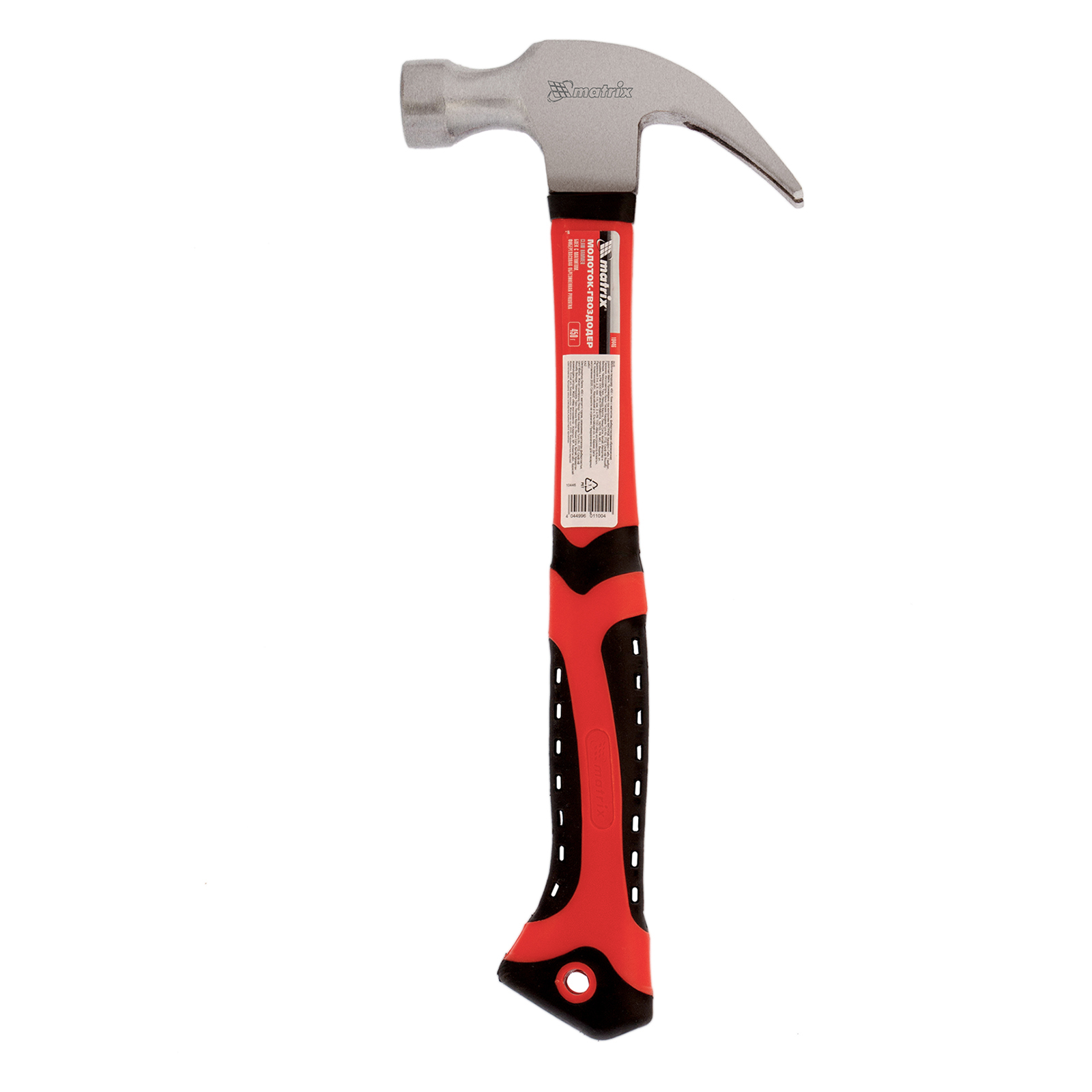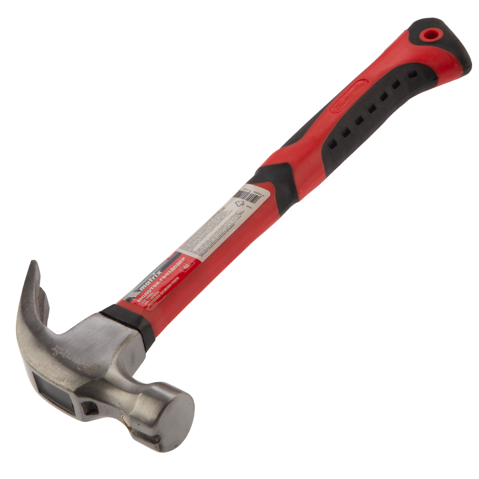 Молоток-гвоздодер, 450 г, боек c магнитом, фибергласовая обрезиненная рукоятка Matrix