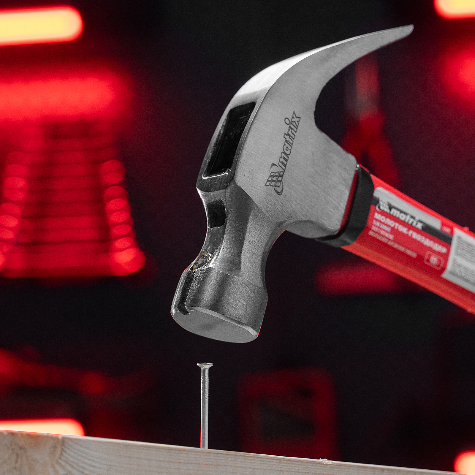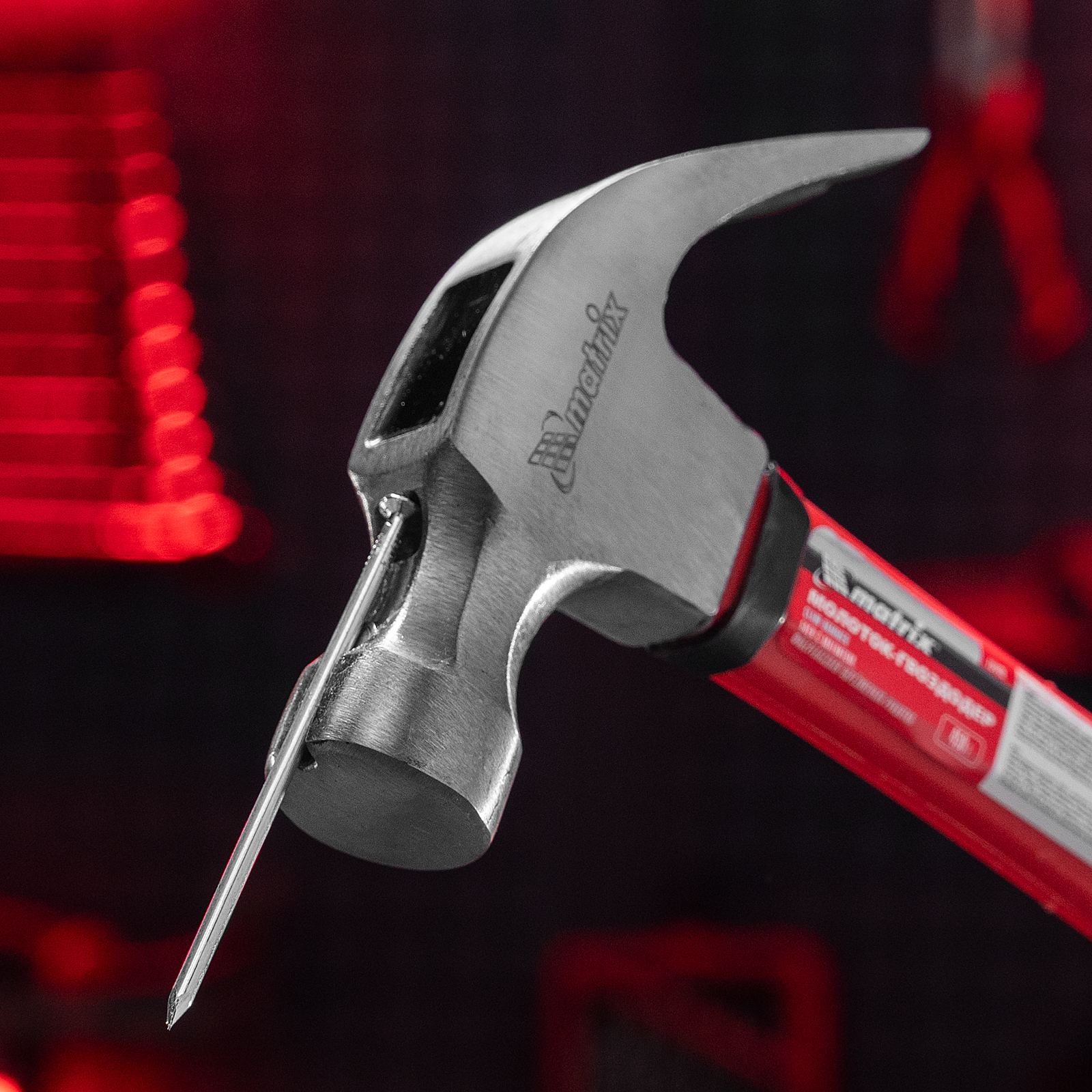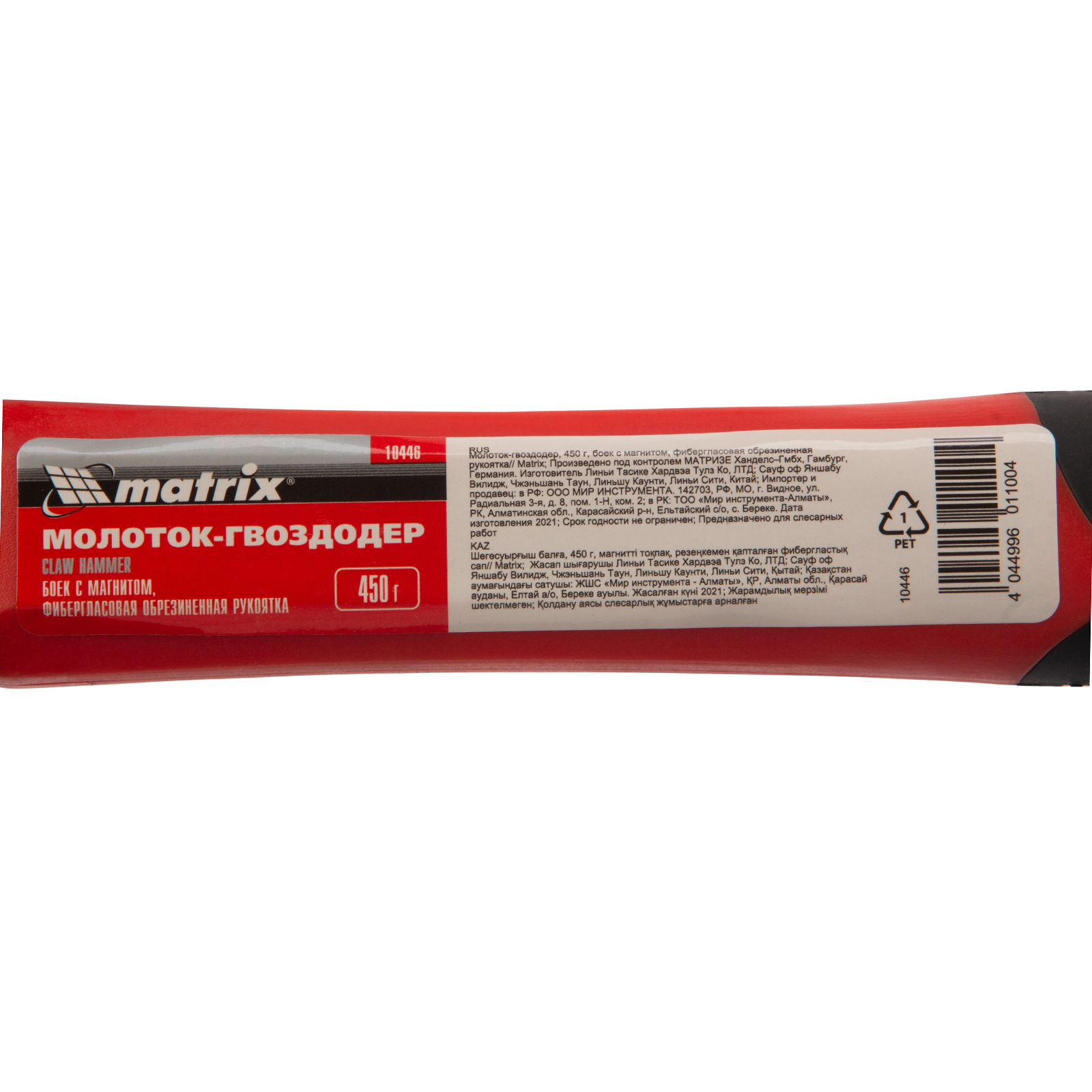 Молоток-гвоздодер Matrix 10446 с головкой весом 450 г, бойком с магнитом и фибергласовой обрезиненной рукояткой, используется для забивания гвоздей, а также способен вытянуть и придать правильную форму неправильно вбитому крепежу. В верхней части бойка имеется паз с магнитом, в котором можно зафиксировать гвоздь, — это позволяет не придерживать его рукой при забивании. Молоток-гвоздодер используется в строительстве, а также полезен при сборке мебели и в домашнем хозяйстве.