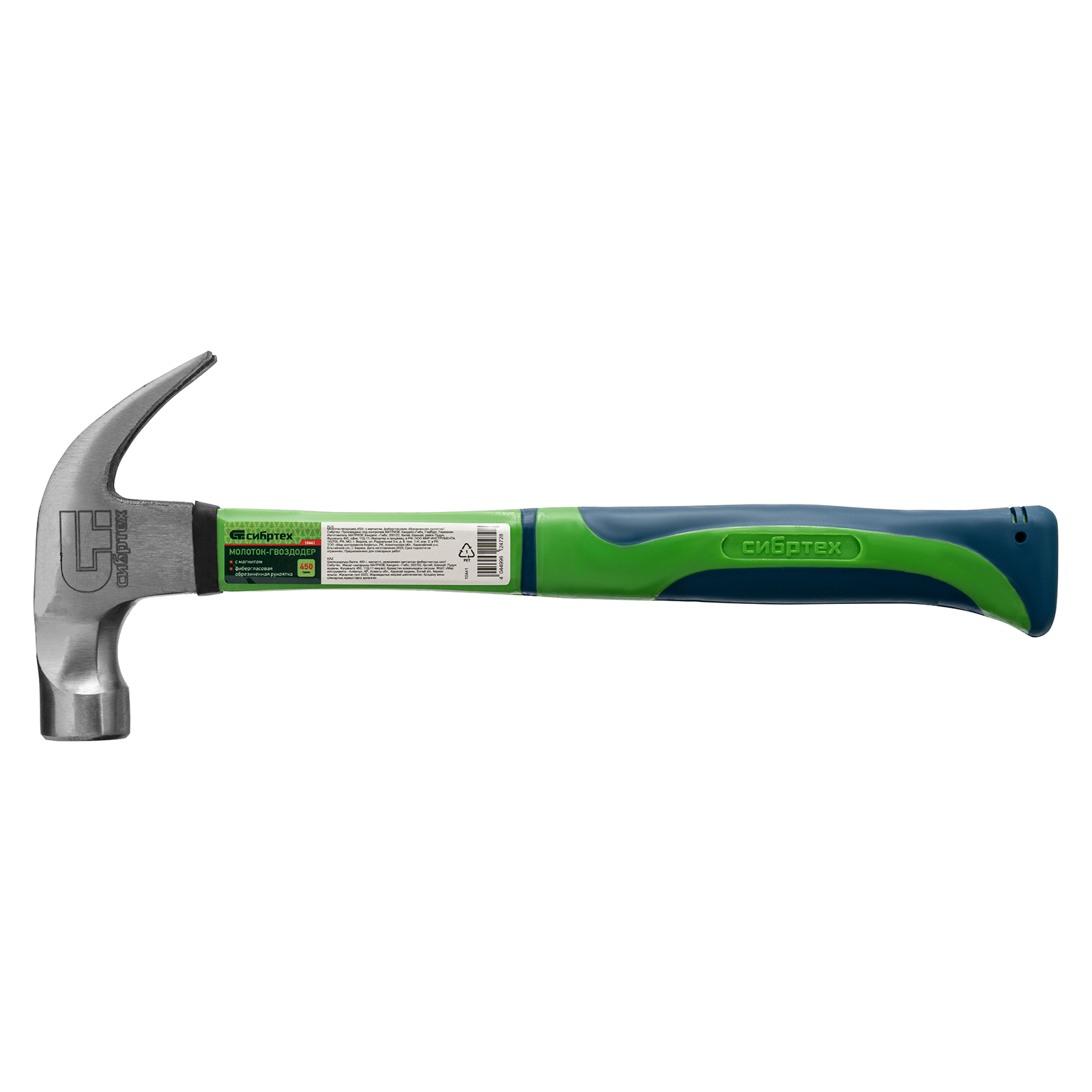 Молоток-гвоздодер, 450 г, с магнитом, фибергласовая обрезиненная рукоятка Сибртех