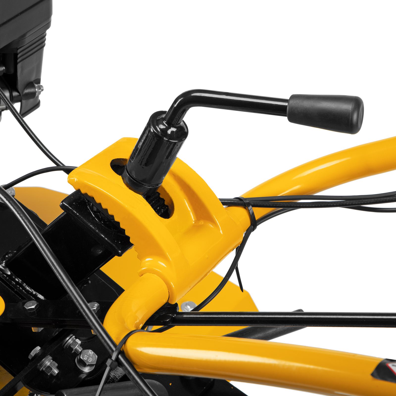 - Легкое управление — регулятор оборотов и выключатель зажигания расположены на рукоятках, это позволяет быстро менять скорость на участках разной сложности.