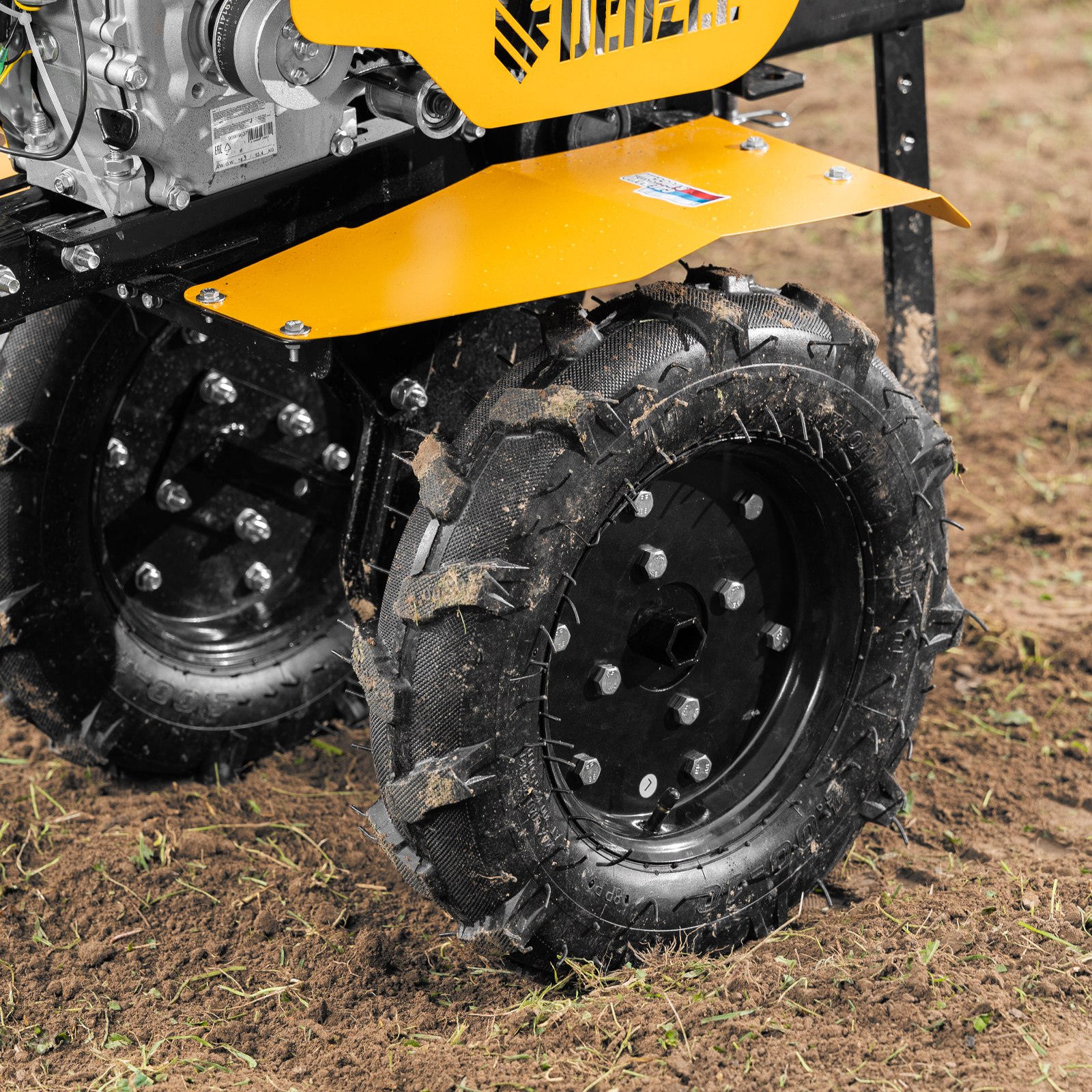 - Безопасность — защитные крылья предотвращают вылет из-под колес комьев земли и твердых предметов.