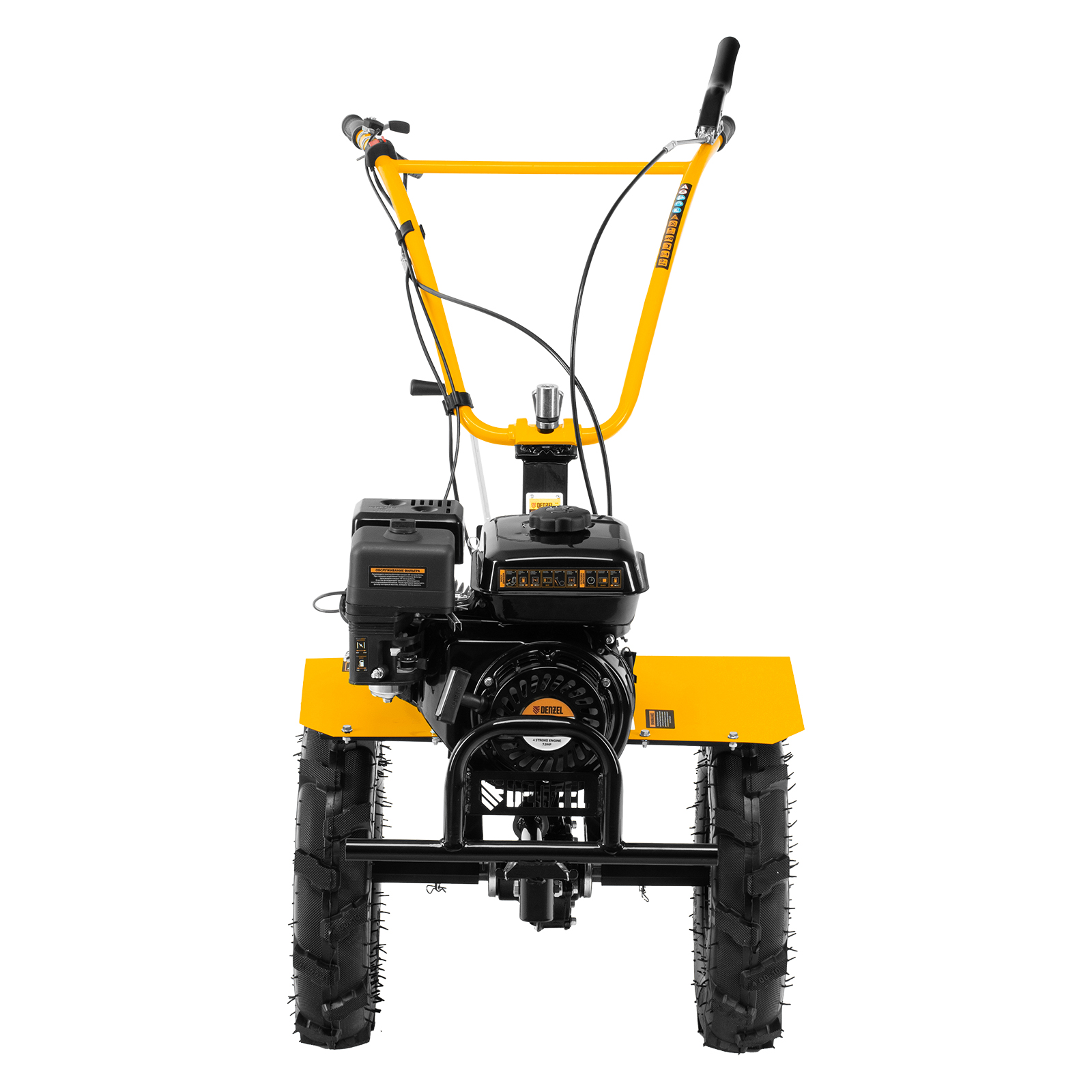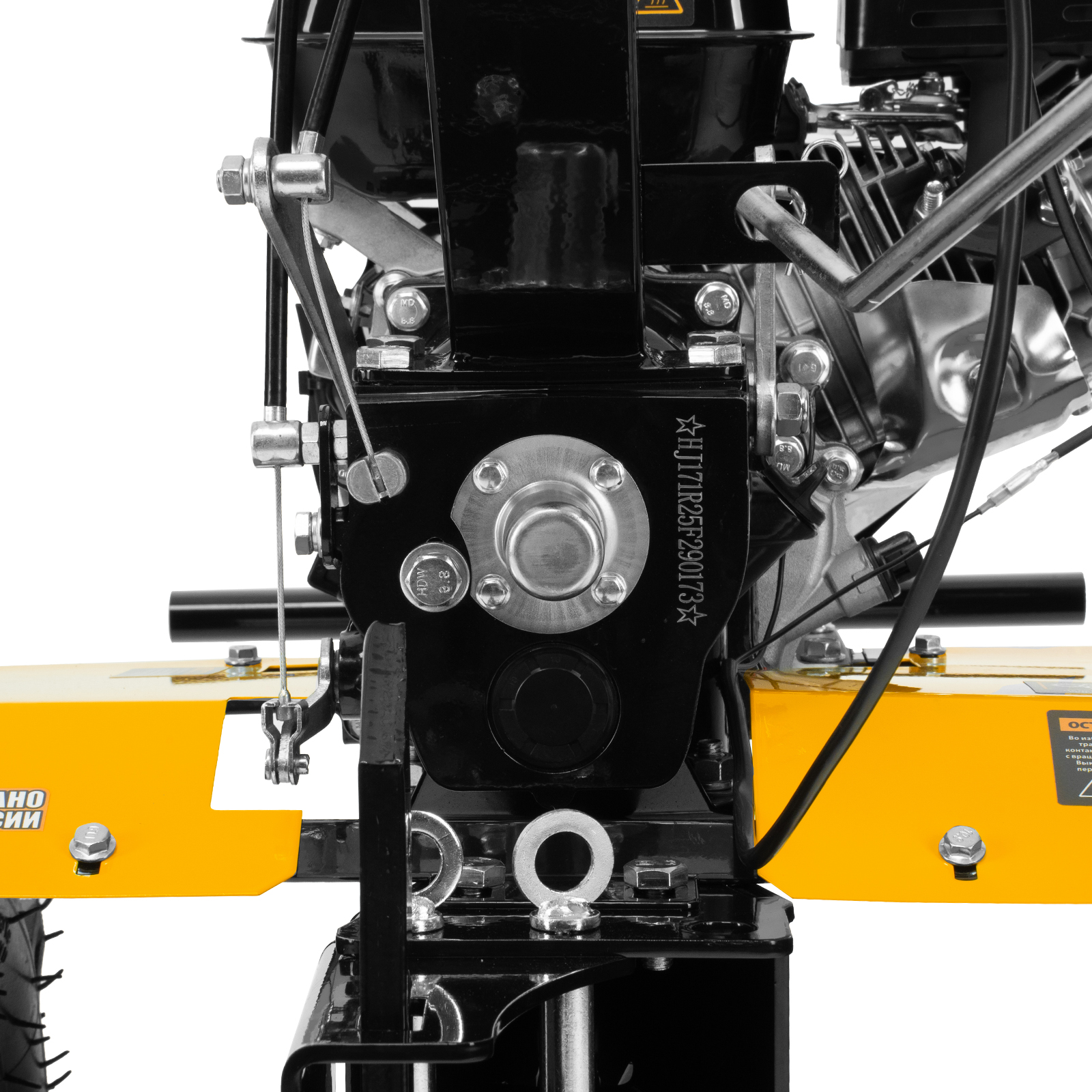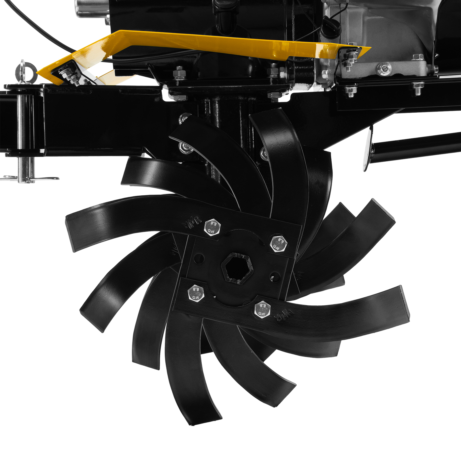 - Комфортное управление — регулятор оборотов двигателя и кнопка пуска выведены на рукоятку перед оператором, поэтому можно оперативно менять режим вспашки, не наклоняясь.