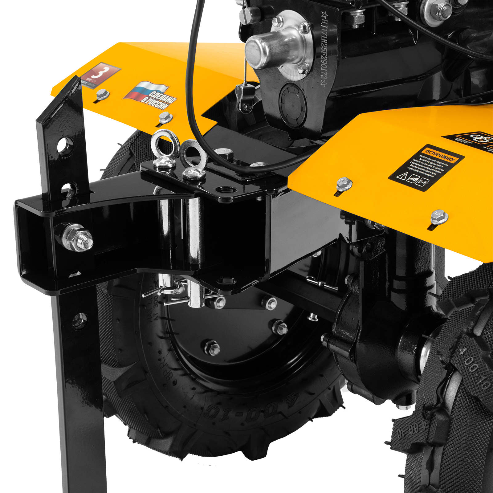 - Повышенная проходимость — увеличенные пневмоколеса обеспечивают маневренность даже на вязком грунте после дождя.