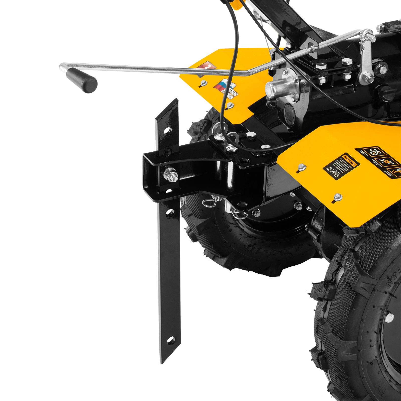 - Комфортная транспортировка — усиленная рукоятка-бампер позволяет с удобством перемещать и загружать мотоблок в транспорт.
