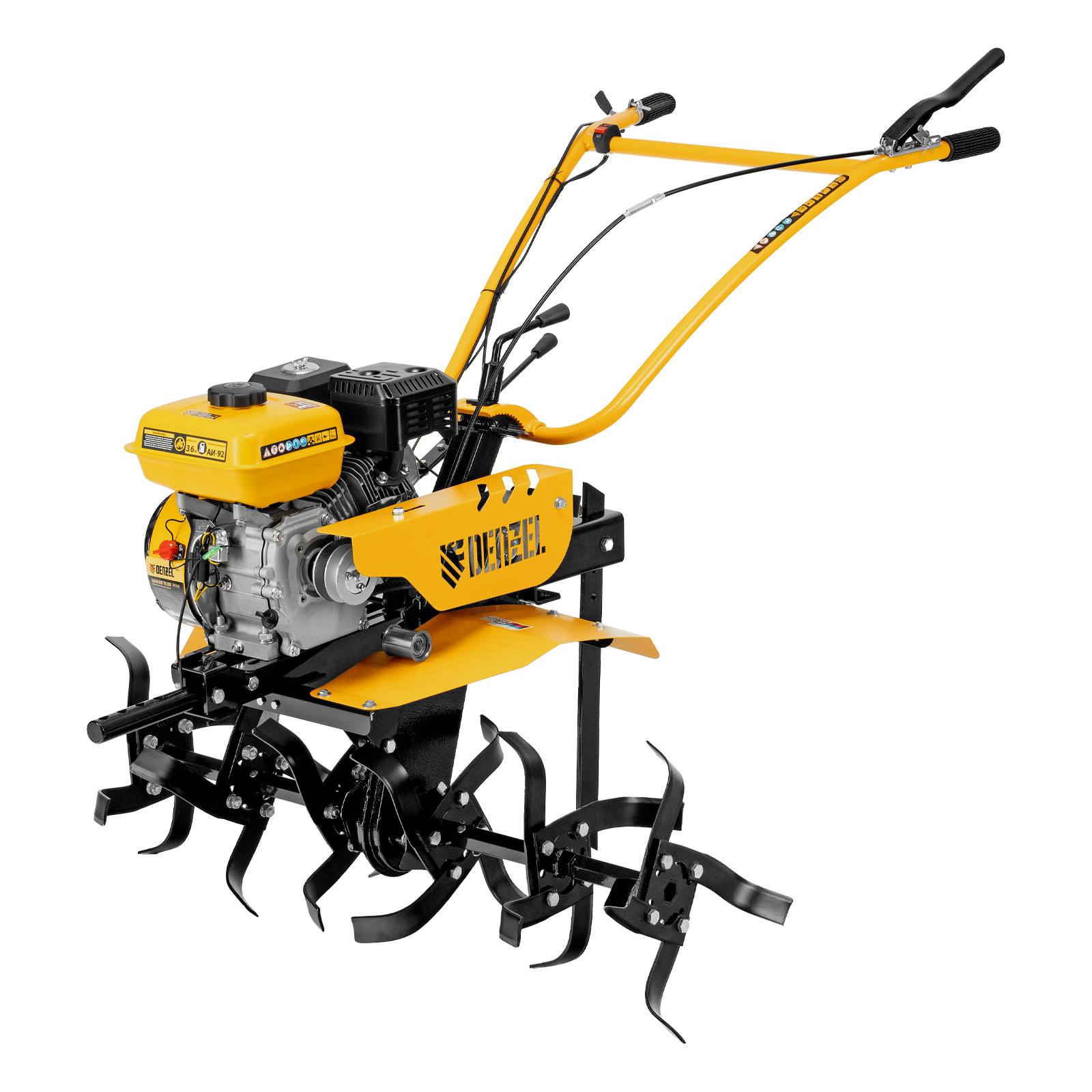 - Эффективная работа на любых типах грунта — мотоблок оснащен мощным и экономичным OHV-двигателем Denzel Long Life и стальными закаленными фрезами, не требующими заточки в течение всего срока эксплуатации.