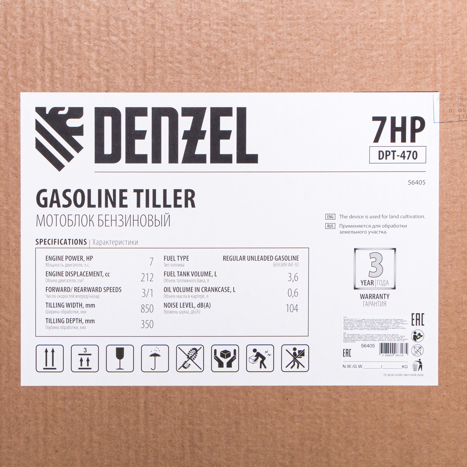 Мотоблок DPT-470, 7 л.с, ременное сцепление, ширина 85 см, глубина 35 см, фрез 3 х 4, ШОМ, передачи 3В/1Н Denzel в Санкт-Петербурге