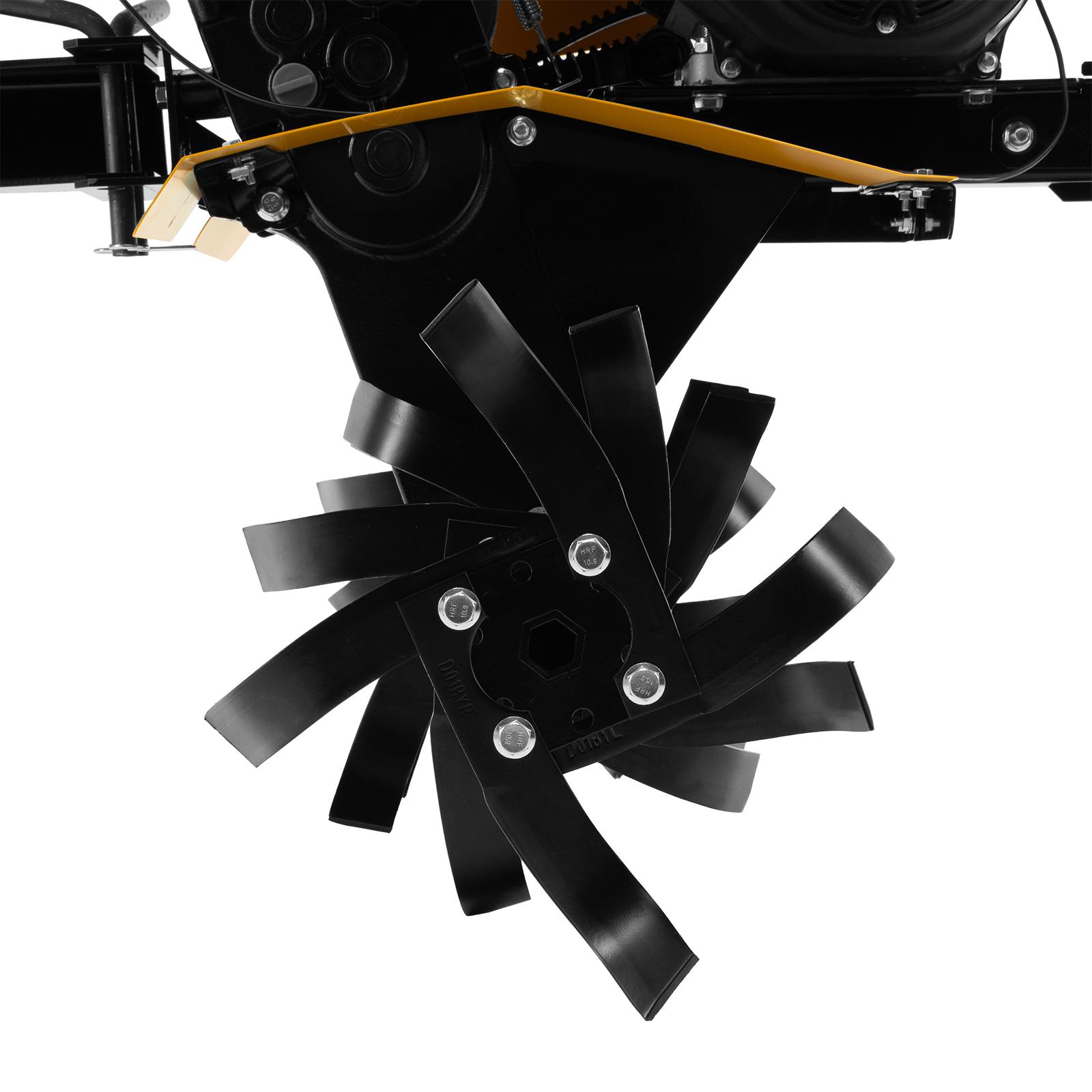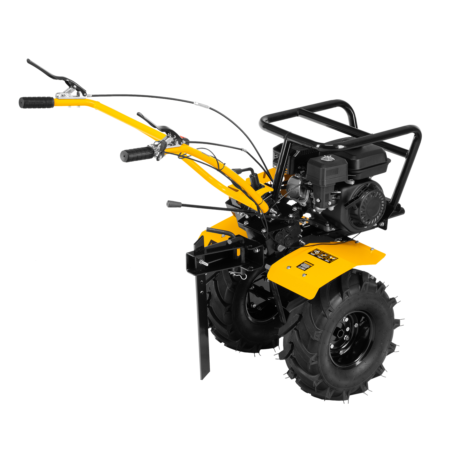 - Безопасная эксплуатация — широкие защитные крылья предотвращают вылет комьев земли и других предметов в сторону пользователя.