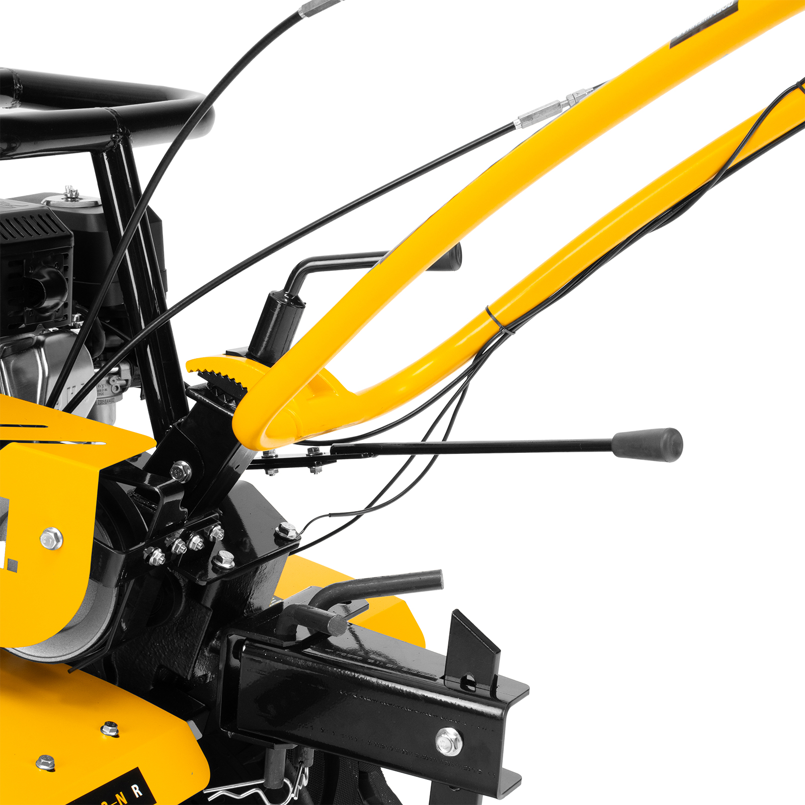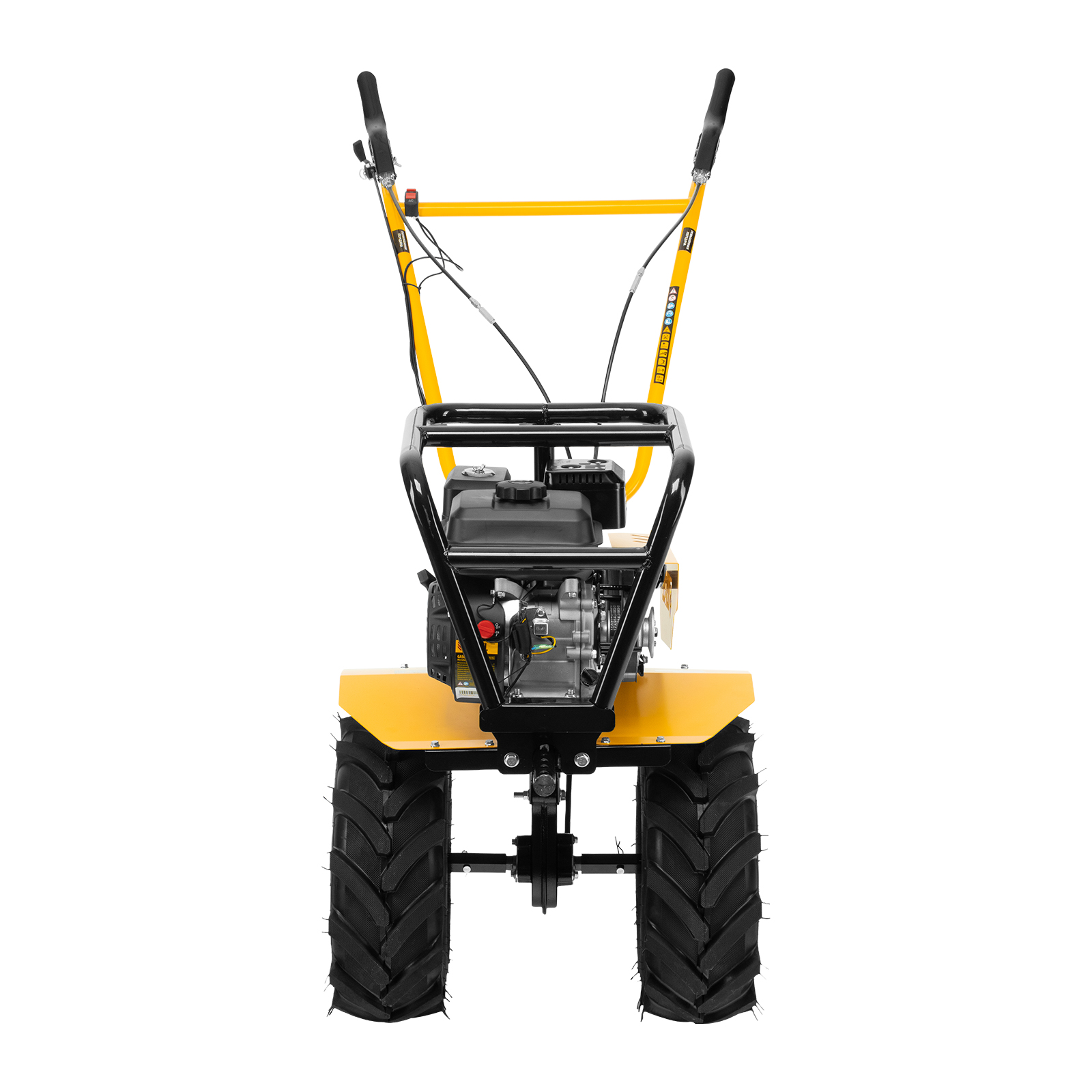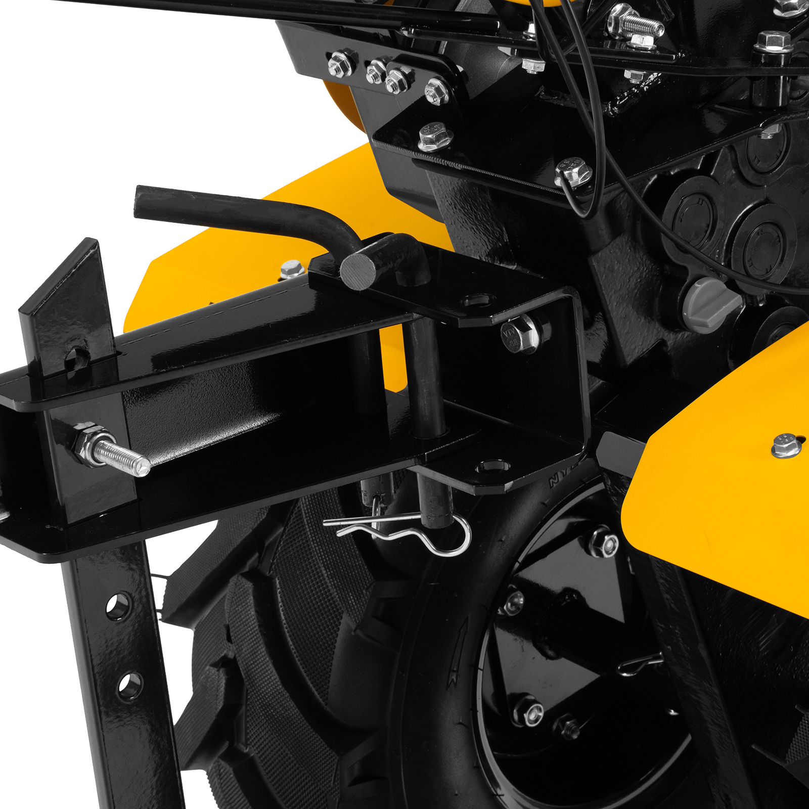 - Усиленная рама — ключевые узлы надежно защищены, мотоблок удобно транспортировать.