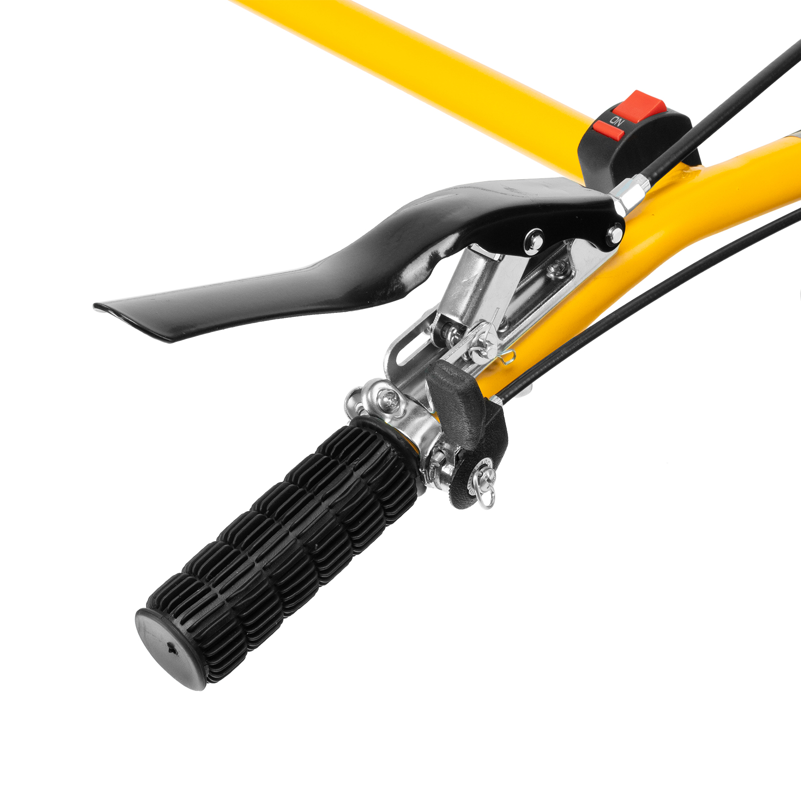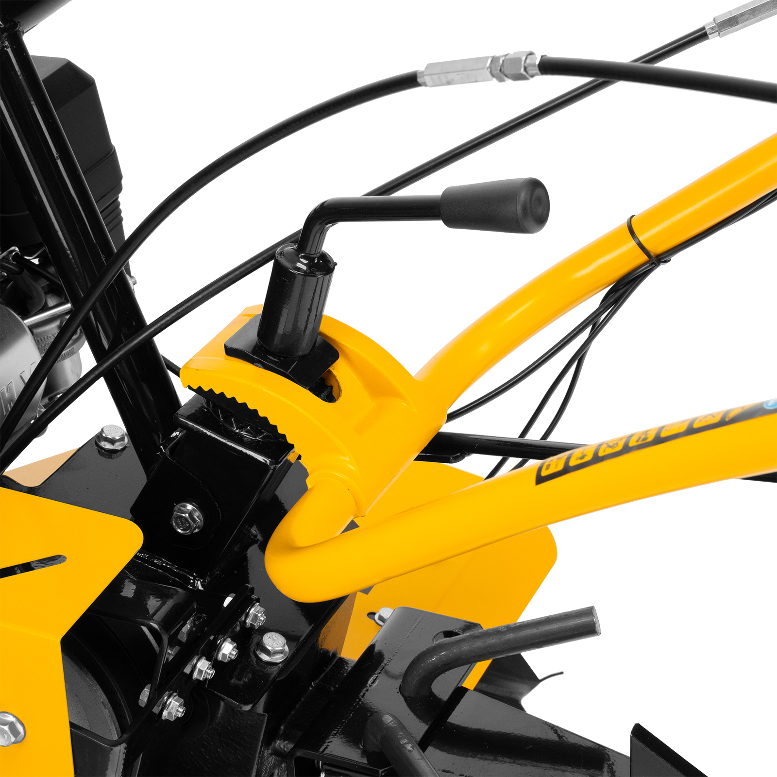 - Удобное управление — регулятор оборотов двигателя и рычаги сцепления расположены на руле, руль регулируется в двух плоскостях.