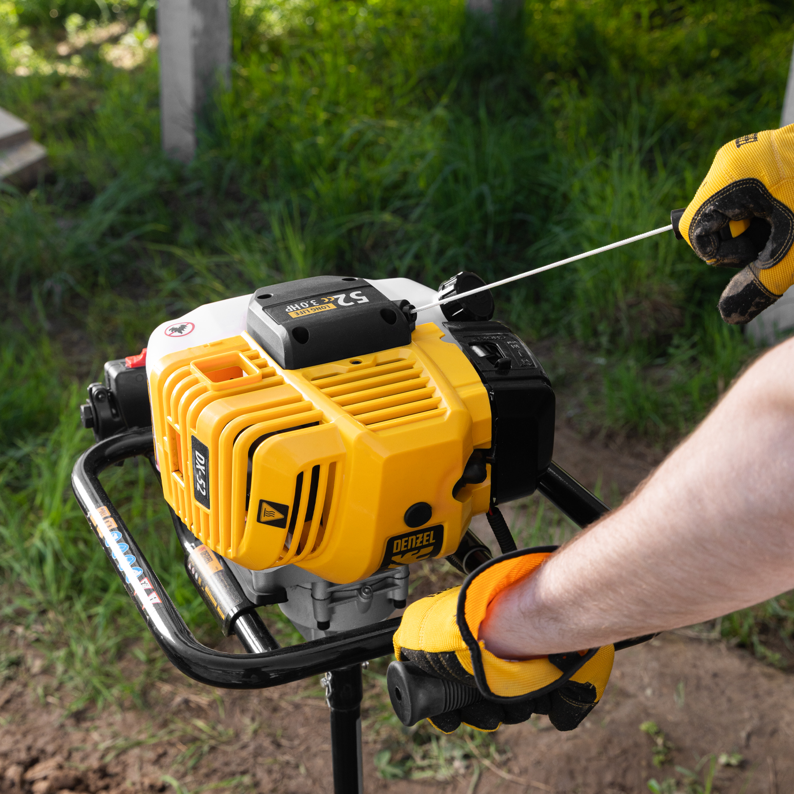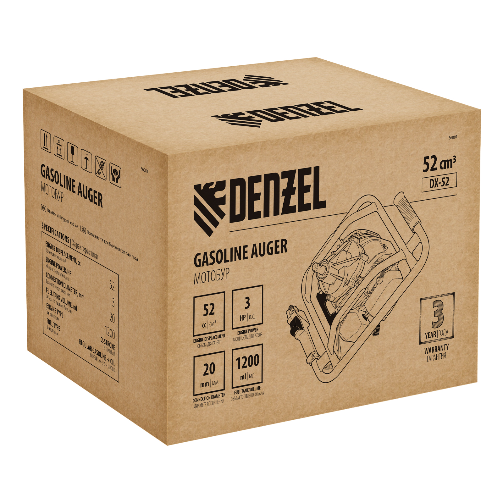 Мотобур DX-52, объем двигателя 52 см3, соединение 20 мм, без шнека Denzel