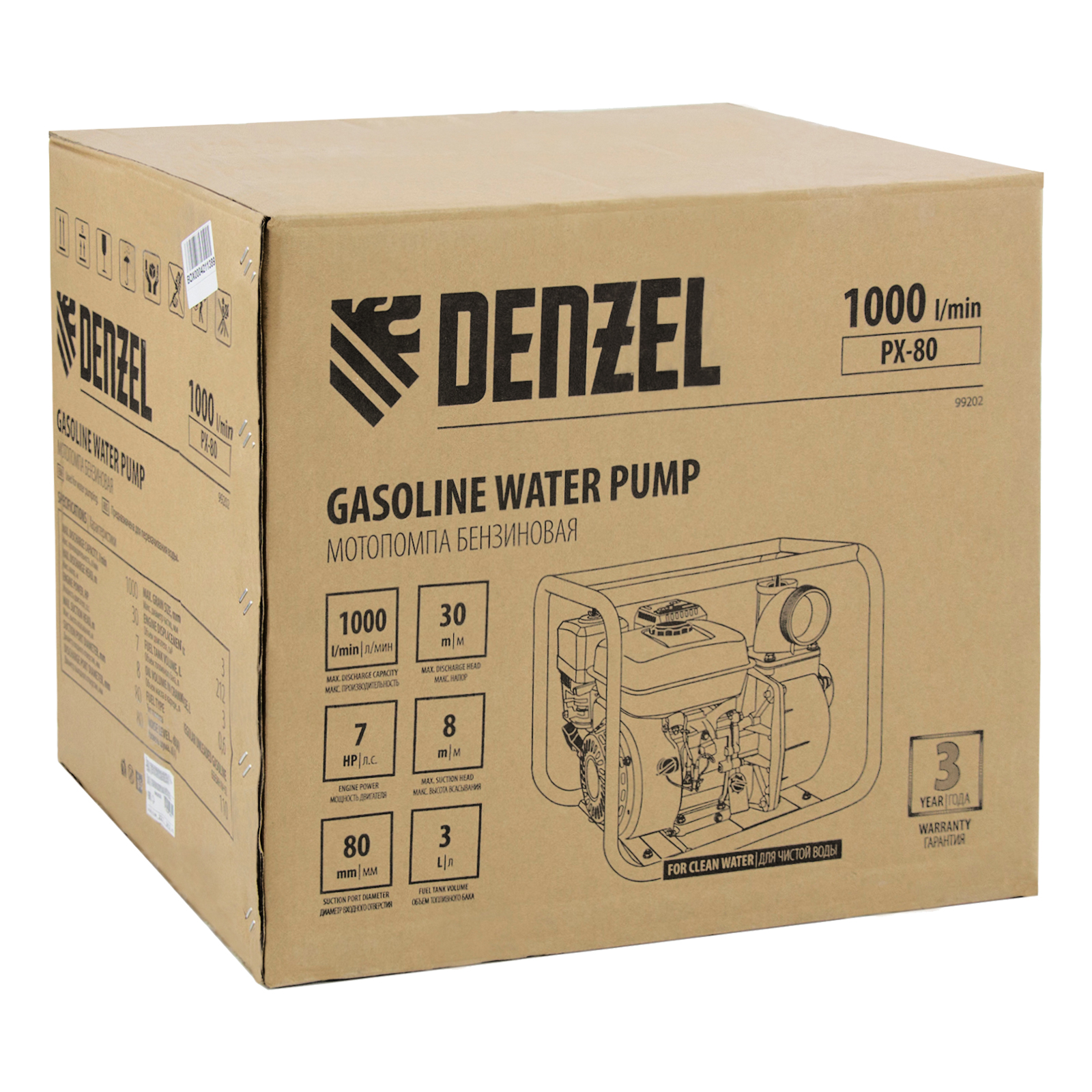 Мотопомпа бензиновая для чистой воды PX-80, 7 л.с, 3", 1000 л/мин, глубина 8 м, напор 30 м Denzel в Санкт-Петербурге