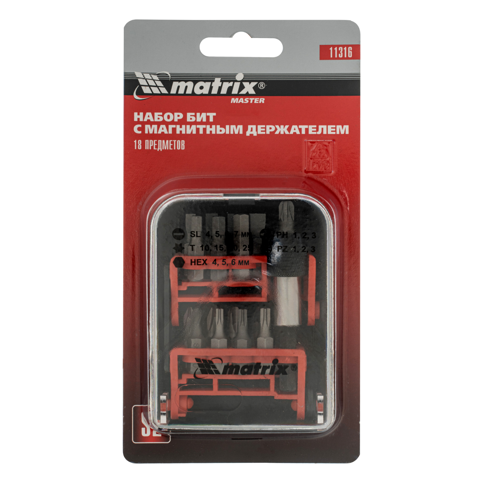 Набор бит, адаптер для бит, сталь S2, 18 предметов, пластиковый кейс Matrix