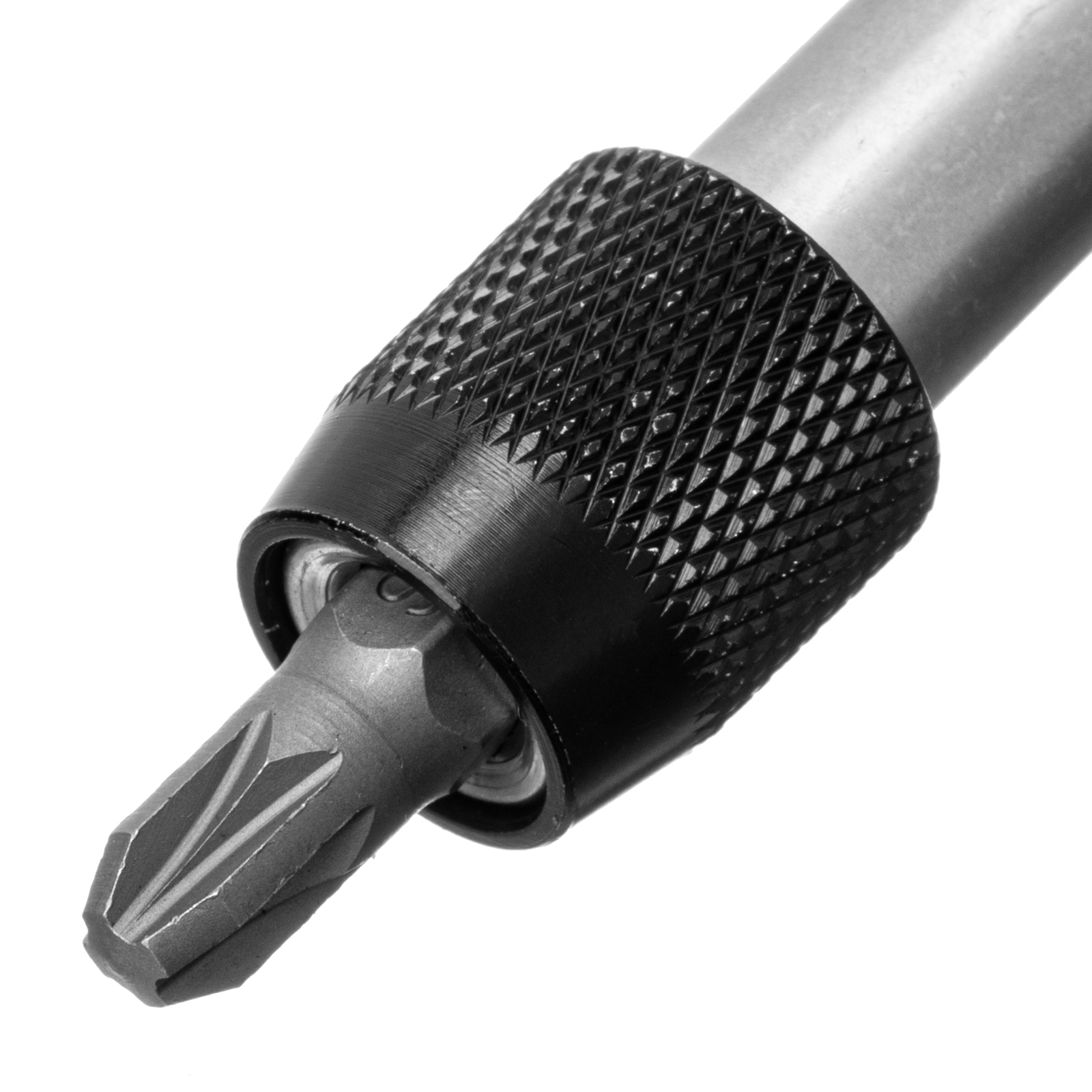 - Надежная фиксация — быстрозажимной механизм крепко удерживает биту в адаптере.
