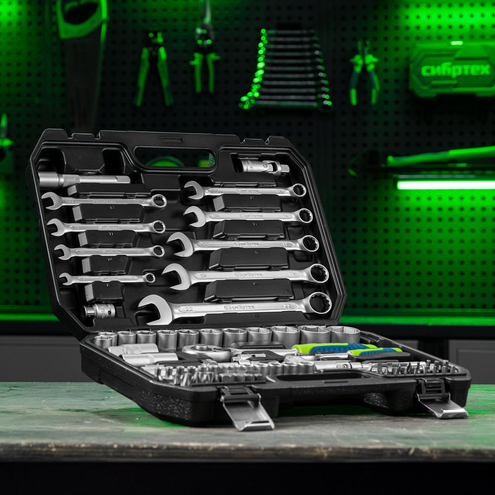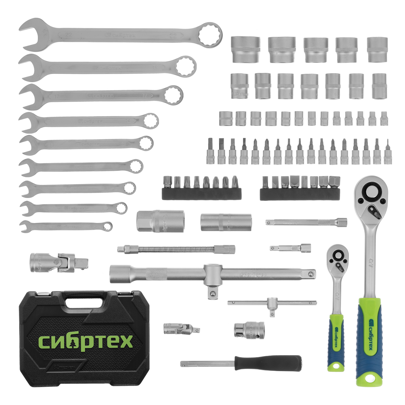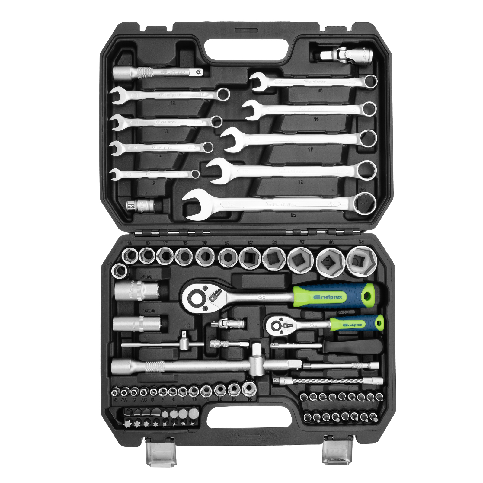 Набор инструментов, 1/2", 1/4", пластиковый кейс, 82 предмета Сибртех