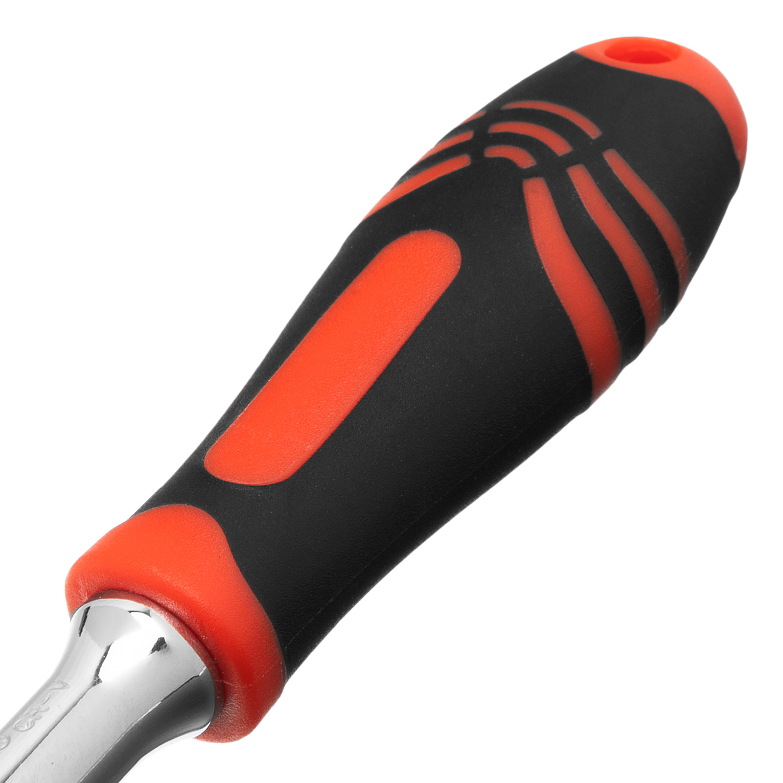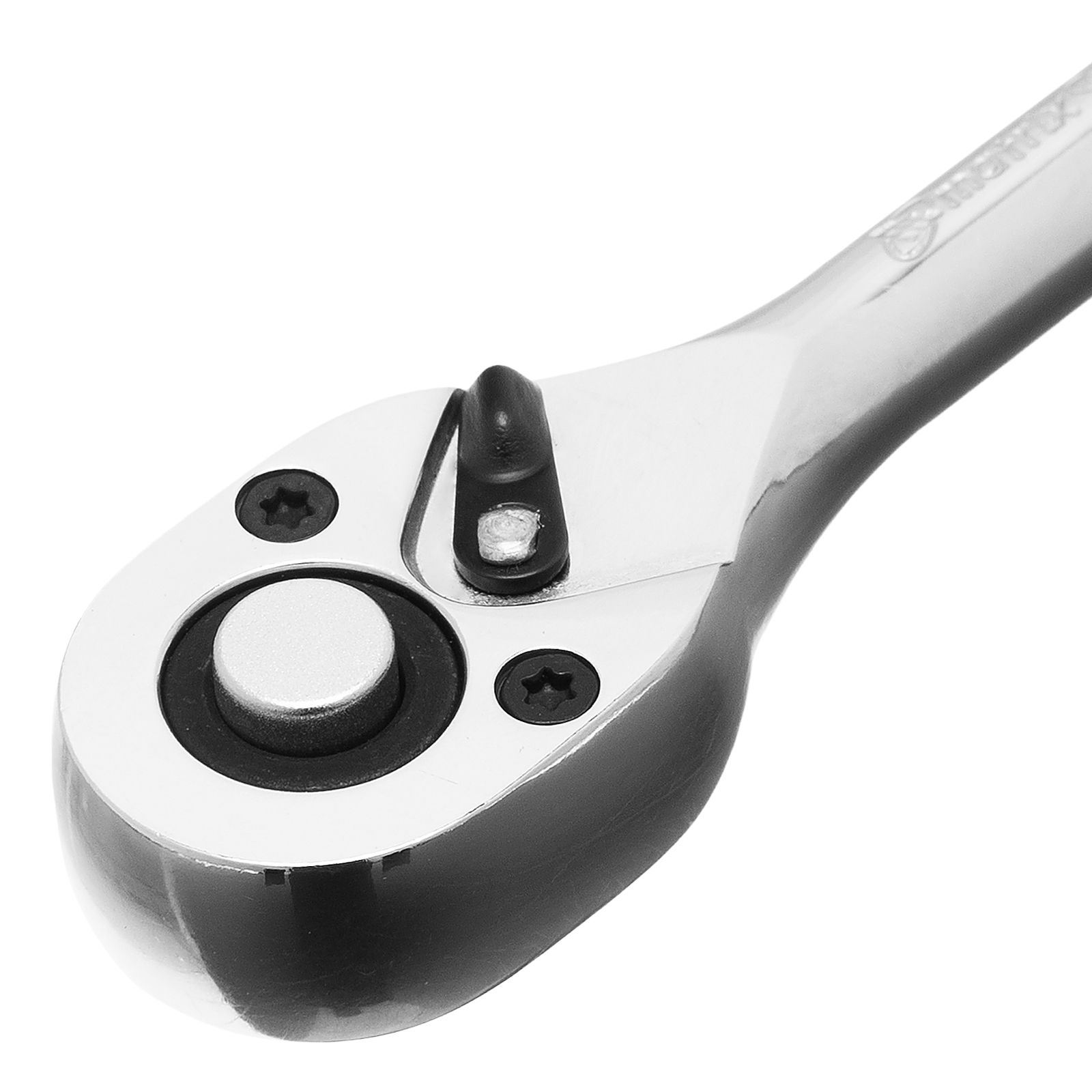- Быстрая замена головок — кнопка сброса на трещотке позволяет мгновенно снять насадку.