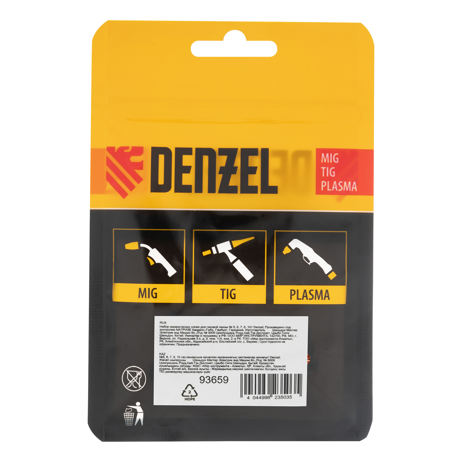 Набор керамических сопел Denzel 93659 для газовой линзы включает в себя оснастку № 5, 6, 7, 8, 10, предназначенную для формирования потока защитного газа во время проведения сварочных работ. Предотвращает поступление кислорода к свариваемому материалу и повышает качество сварного шва. Сопла совместимы с TIG-горелками Denzel 93643, 93644, а также с моделями других торговых марок с аналогичным посадочным разъемом.