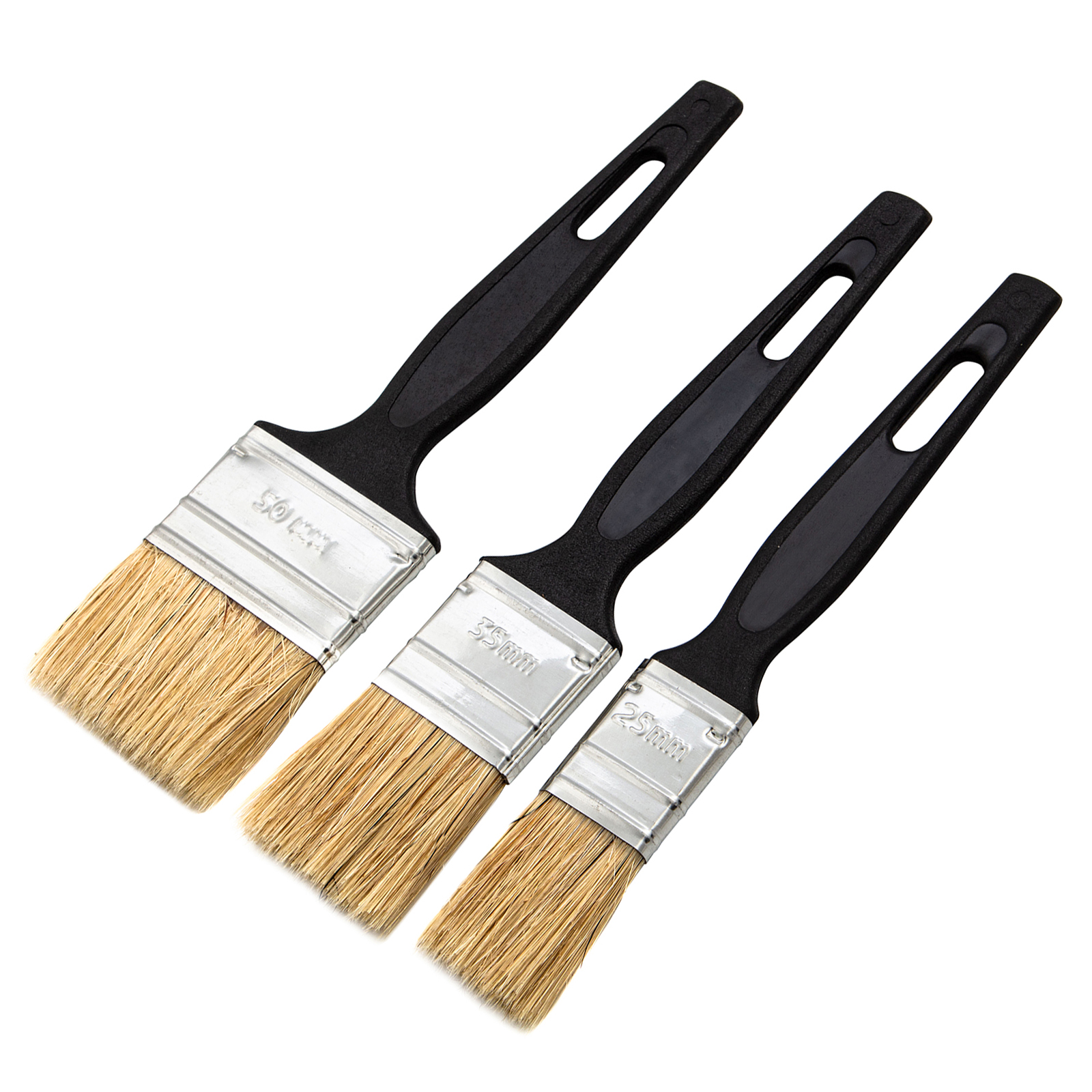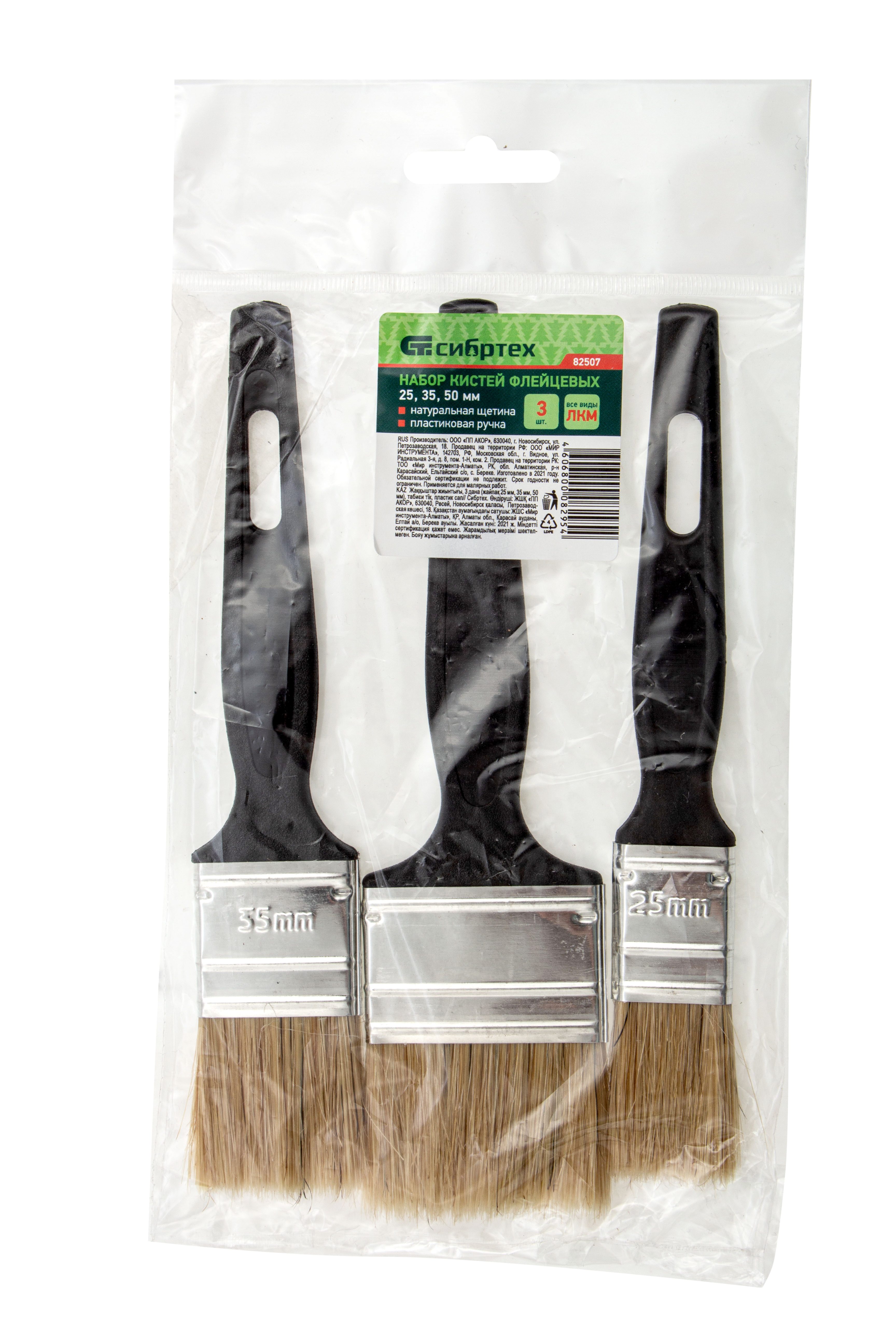 Набор кистей флейцевых 3 шт. (25 мм, 35 мм, 50 мм) натуральная щетина, пластиковая ручка Сибртех