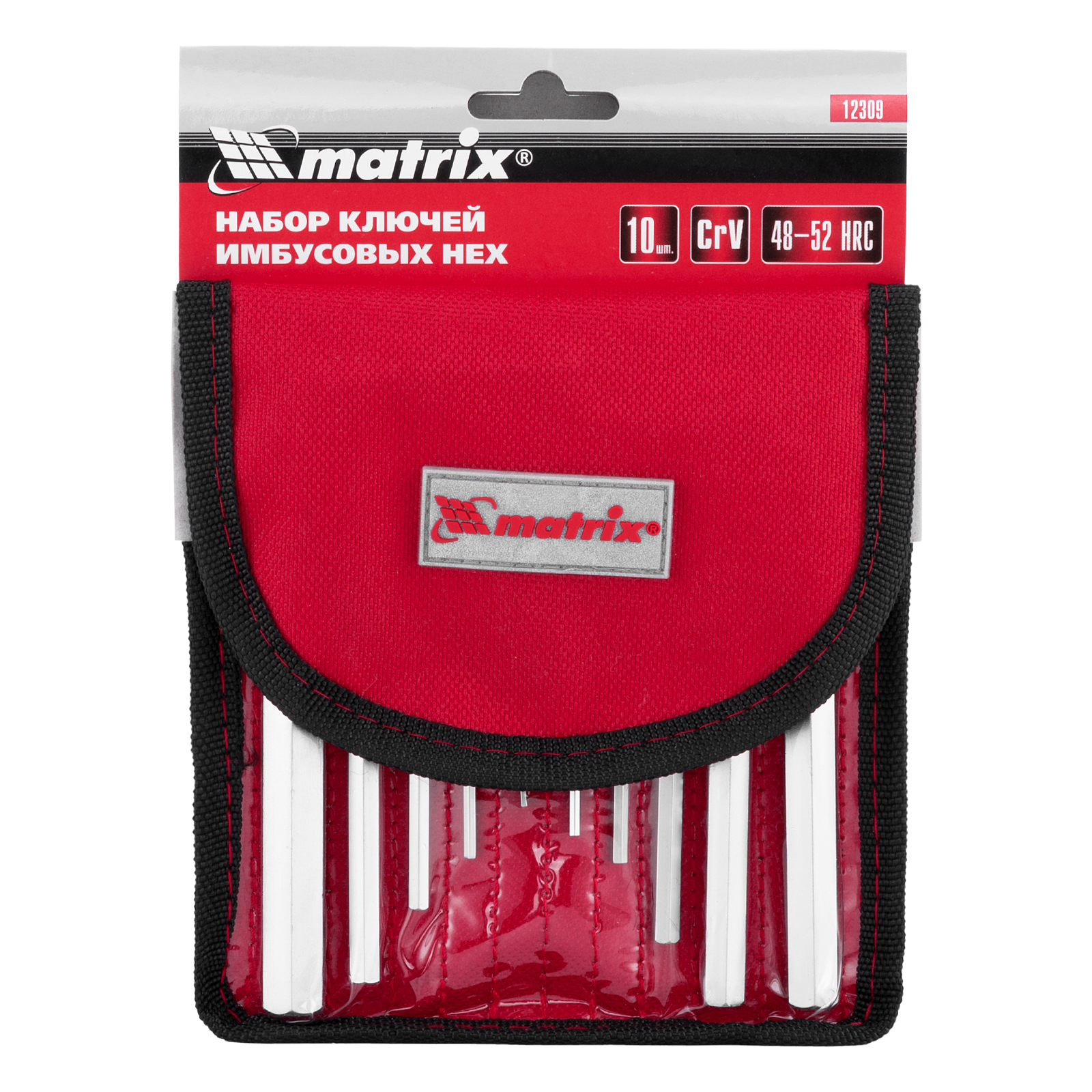 Набор ключей имбусовых HEX, 1.5-12 мм, CrV, 10 шт, короткие, сатин, чехол Matrix