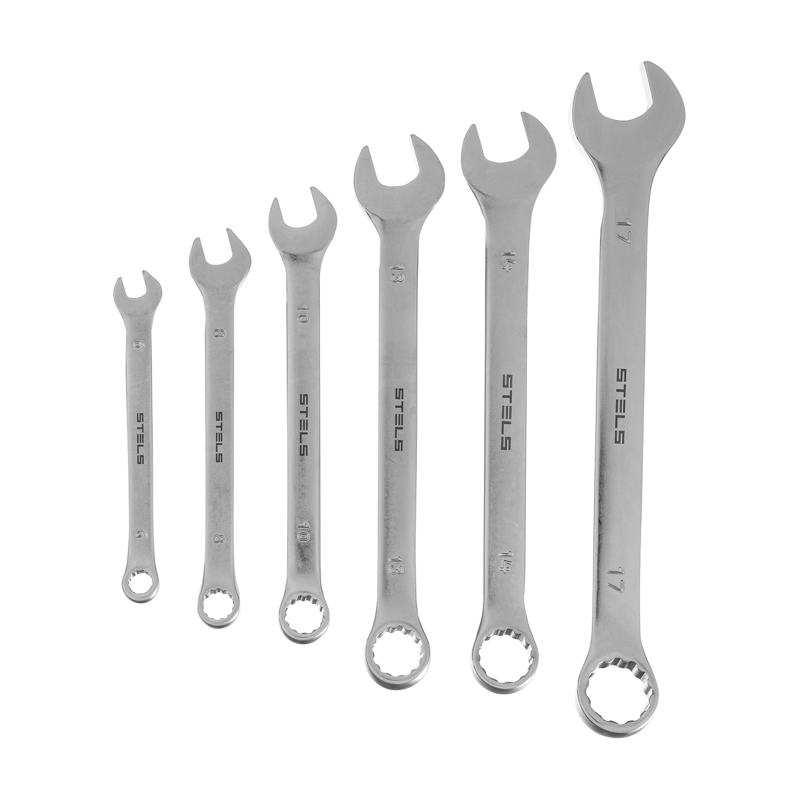 Набор ключей комбинированных 6-17 мм, 6 шт., CrV, матовый хром Stels