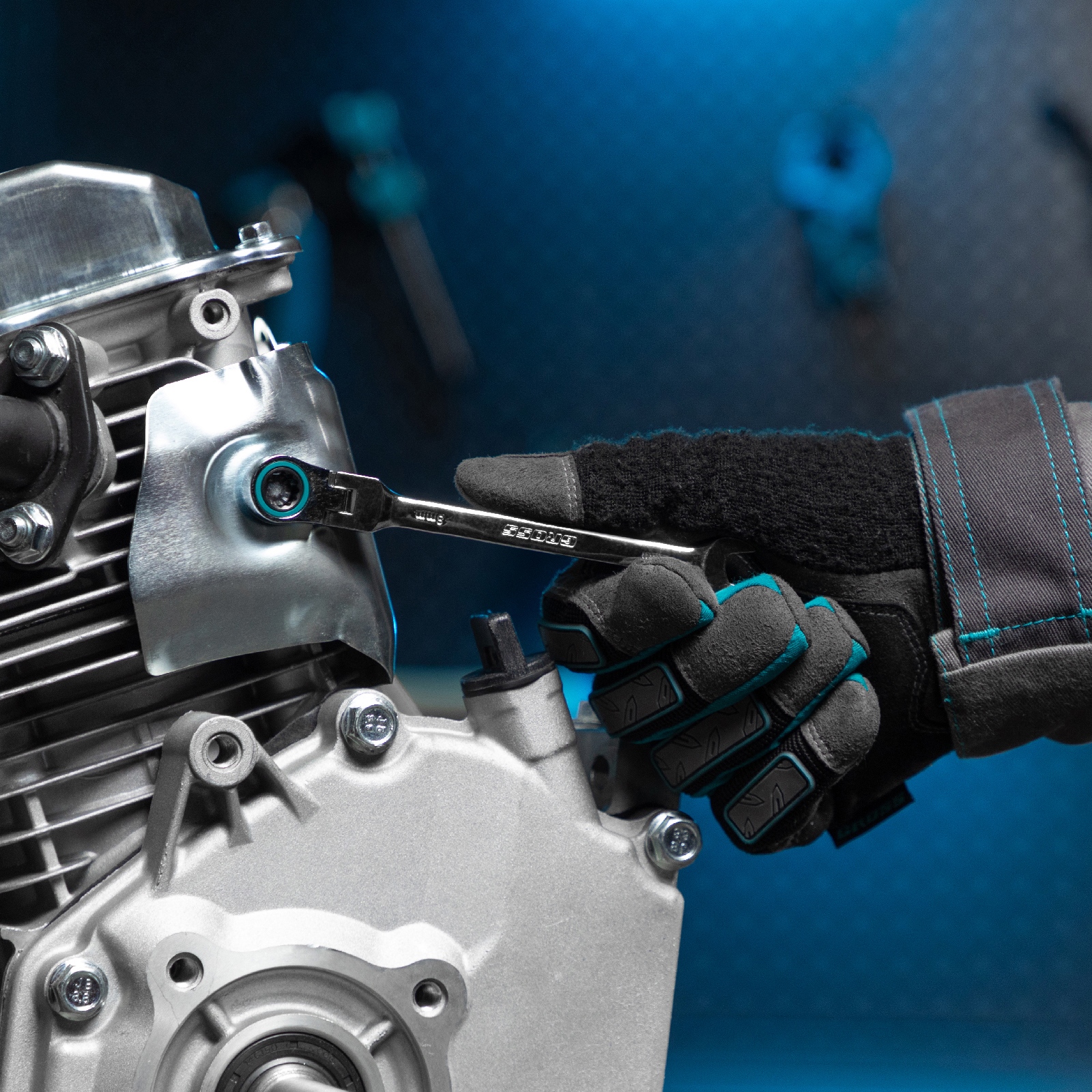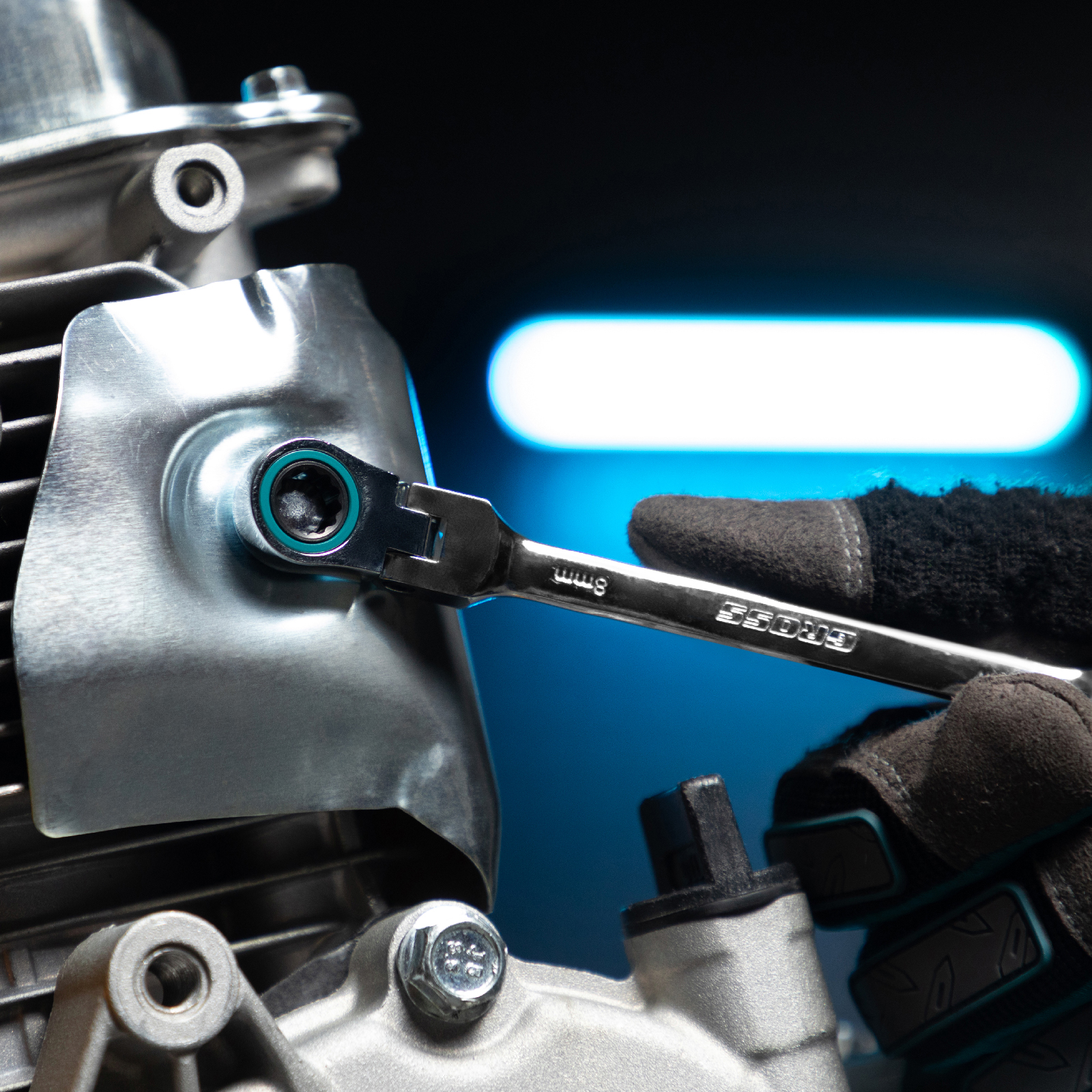 - Работа с крепежами в разных плоскостях — накидные головки с шарнирным механизмом изменяют свое положение на 180 градусов по вертикали.