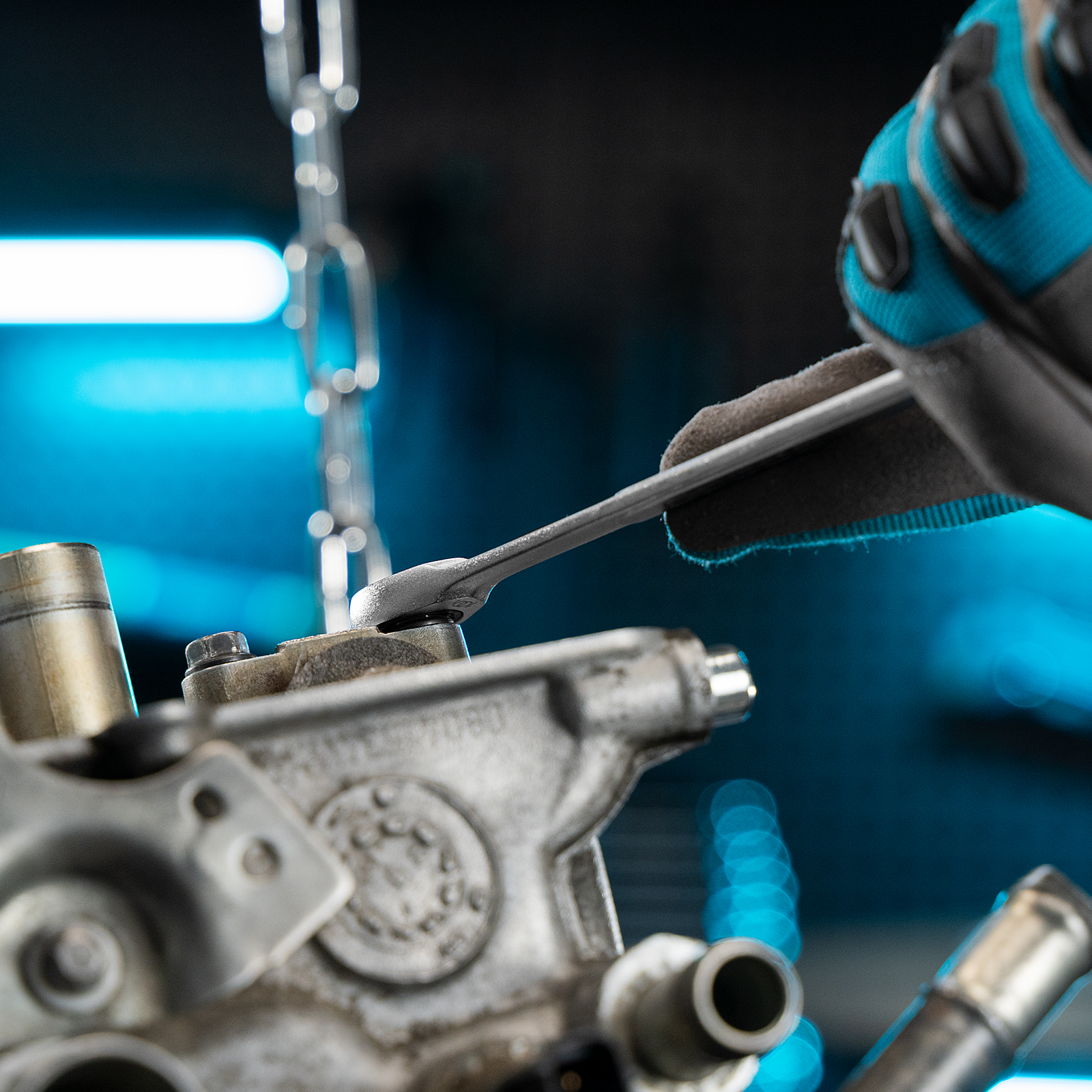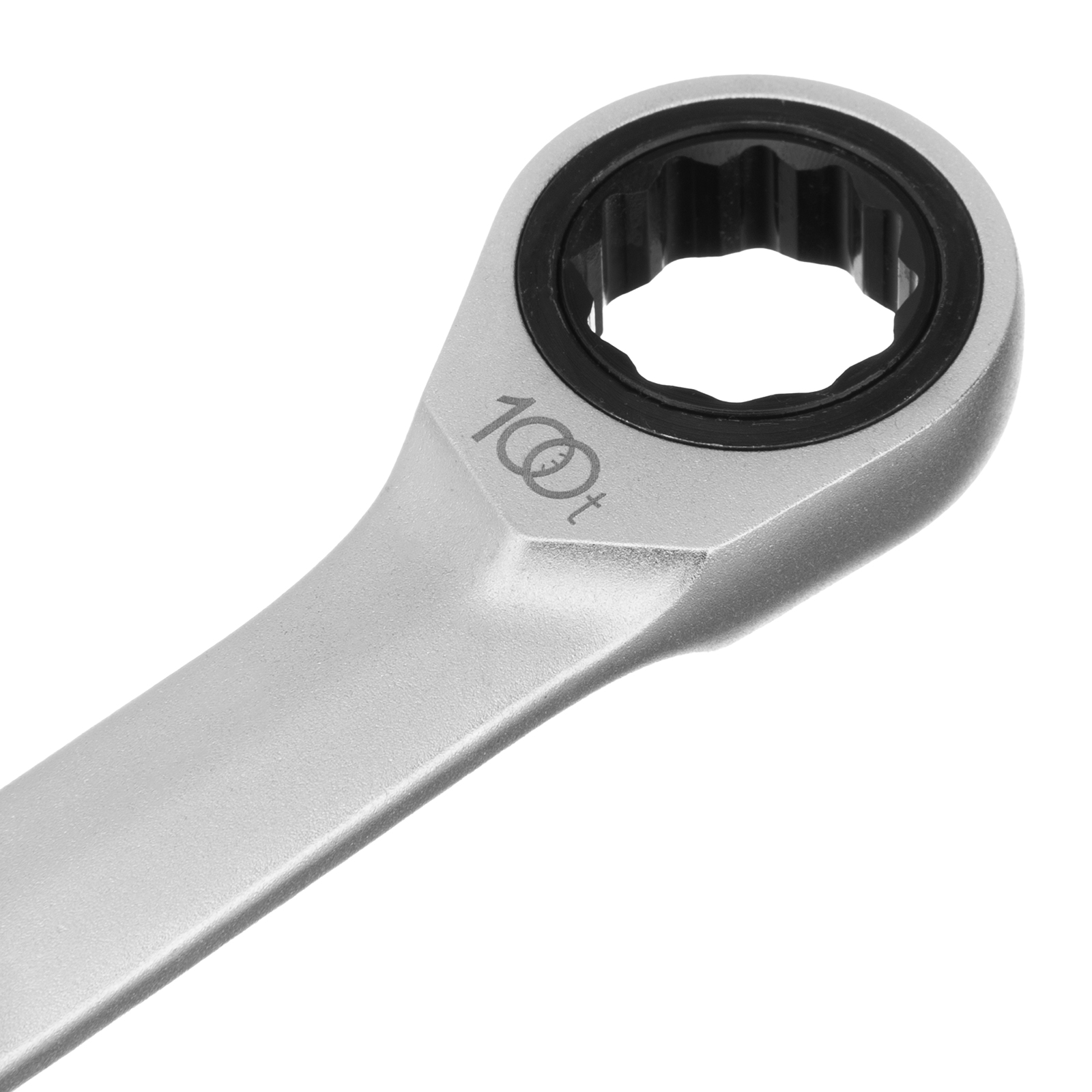 - Удобная работа в условиях ограниченного пространства — храповой механизм ключей со 100 зубцами обеспечивает плавный ход инструмента (шаг трещотки всего 3,6°).